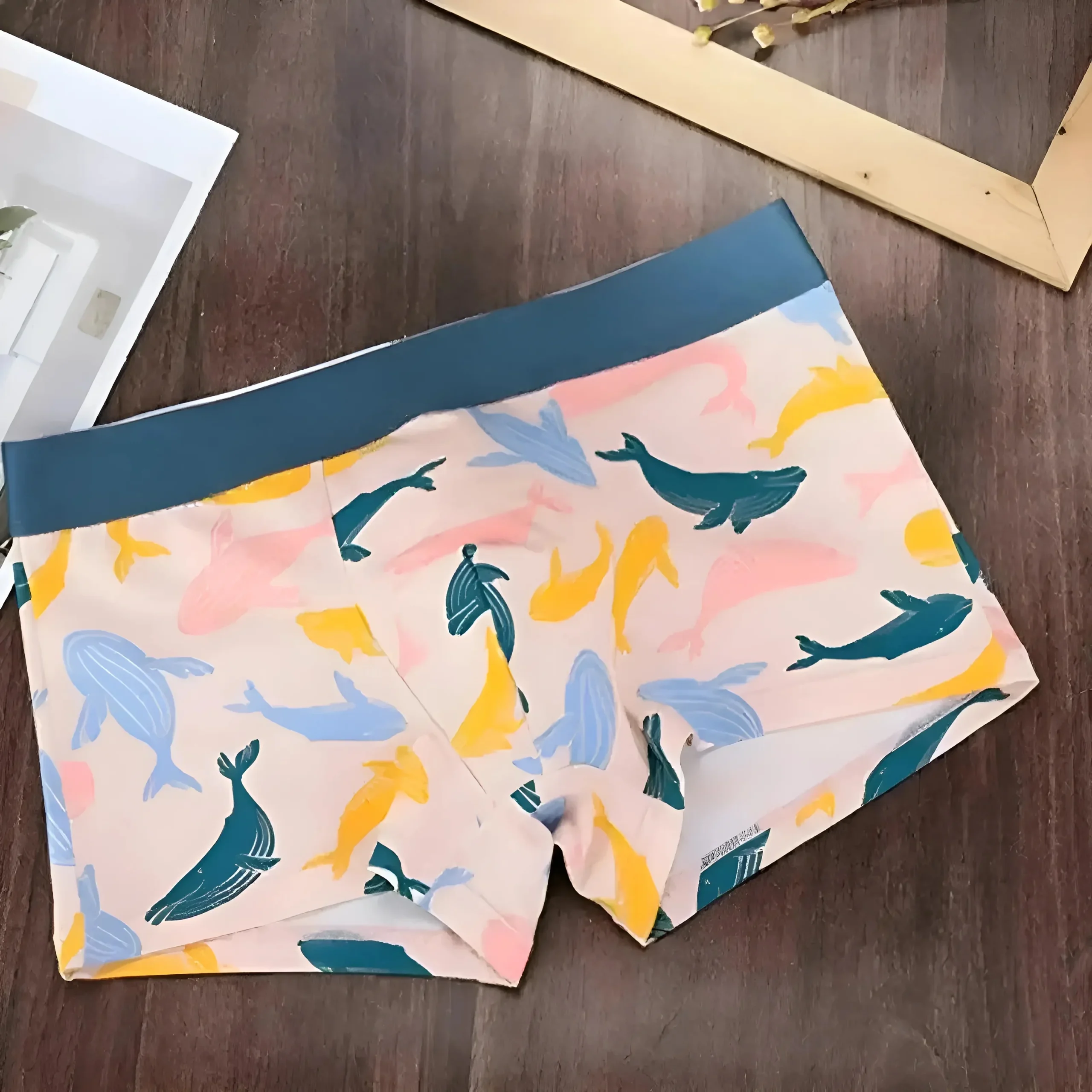 Motif de baleine aux couleurs pastel Ceinture élastique Style boxer Tissu doux Plongez dans le confort et le style avec nos boxers à motif de baleine aux couleurs pastel, conçus juste pour vous ! Découvrez le parfait mélange de douceur et de flexibilité—offrez-vous une paire aujourd’hui !
