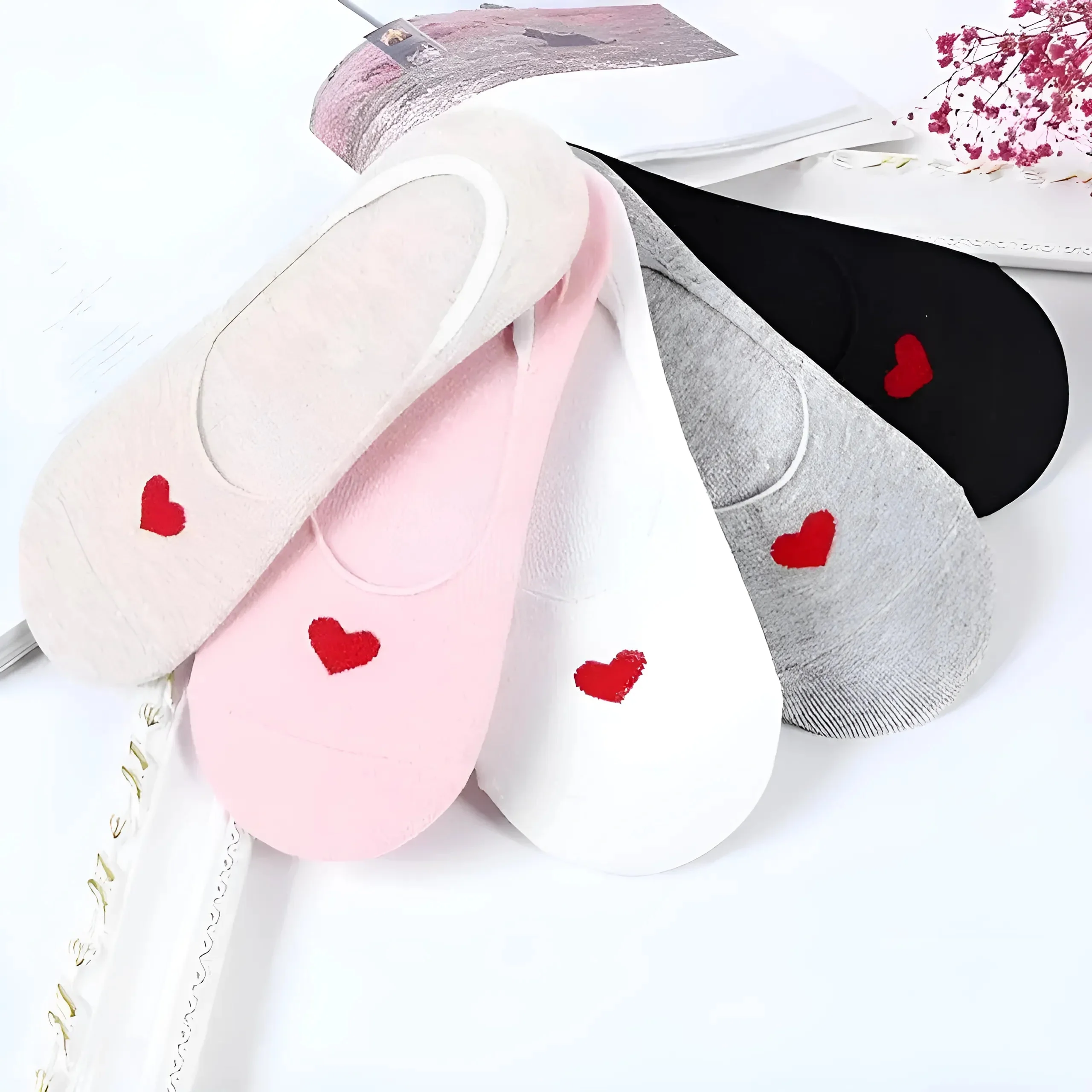 5 paires de chaussettes de cheville avec un design de cœur rouge