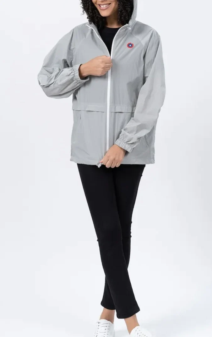 C’est l’indispensable pour la saison d’automne, l’anorak. Ultra léger, il se porte facilement. Il est d’un joli gris perlé. Sa coupe est agréable à porter et surtout il vous protègera lors des jours pluvieux. Son plus : Il se transforme en sac. Ses caractéristiques : 100% Nylon. Très léger.