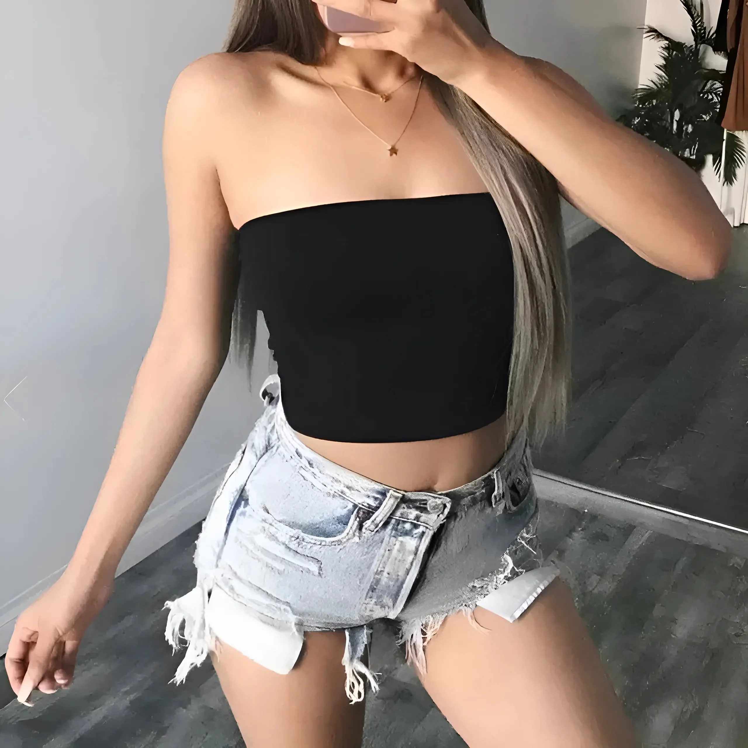Élevez votre style estival avec notre magnifique top bandeau sans bretelles, parfait pour être associé à vos shorts en denim déchirés préférés. Disponible dans des couleurs vives comme le rouge profond et le bourgogne, cette beauté cropped est un incontournable pour chaque femme confiante prête à attirer les regards !
