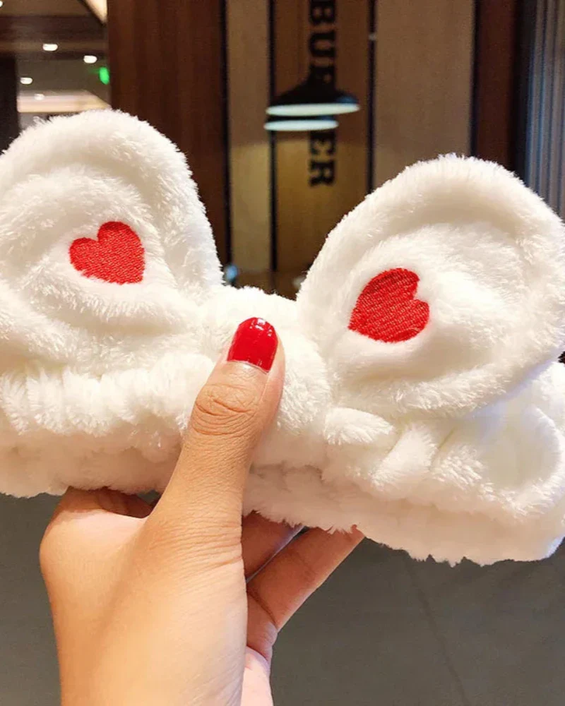 Bandeau en peluche à cœurs
