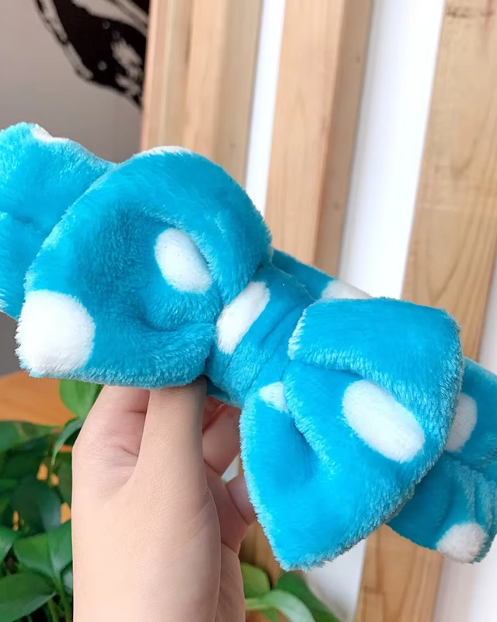 Ajoutez une touche de charme à votre routine quotidienne avec notre bandeau en peluche à nœud à pois. Commandez maintenant et sentez-vous spéciale chaque jour !