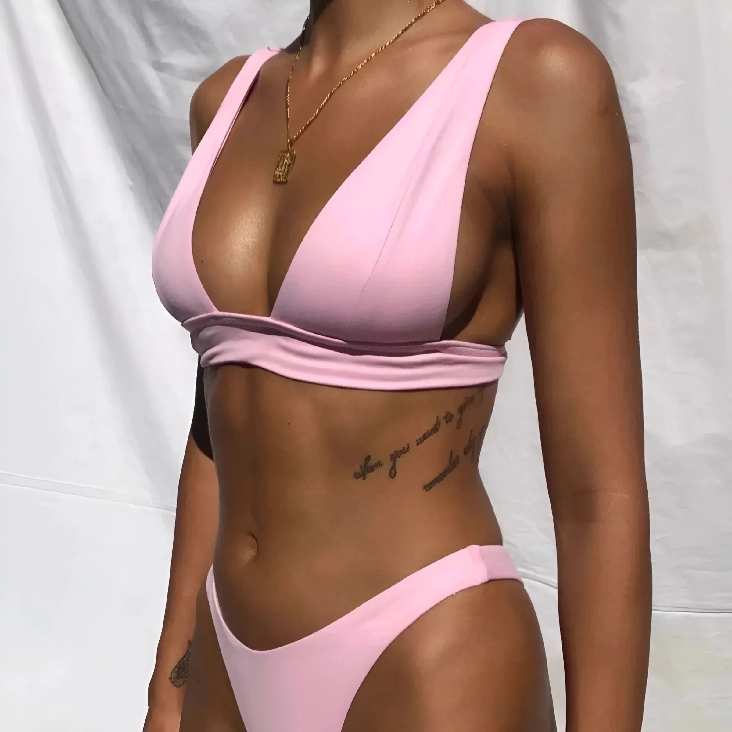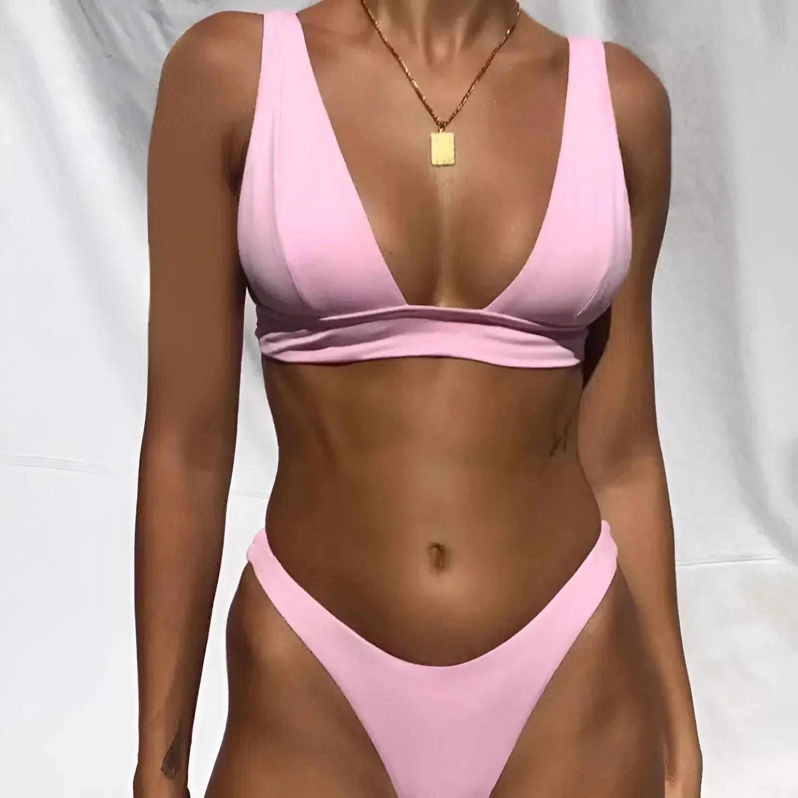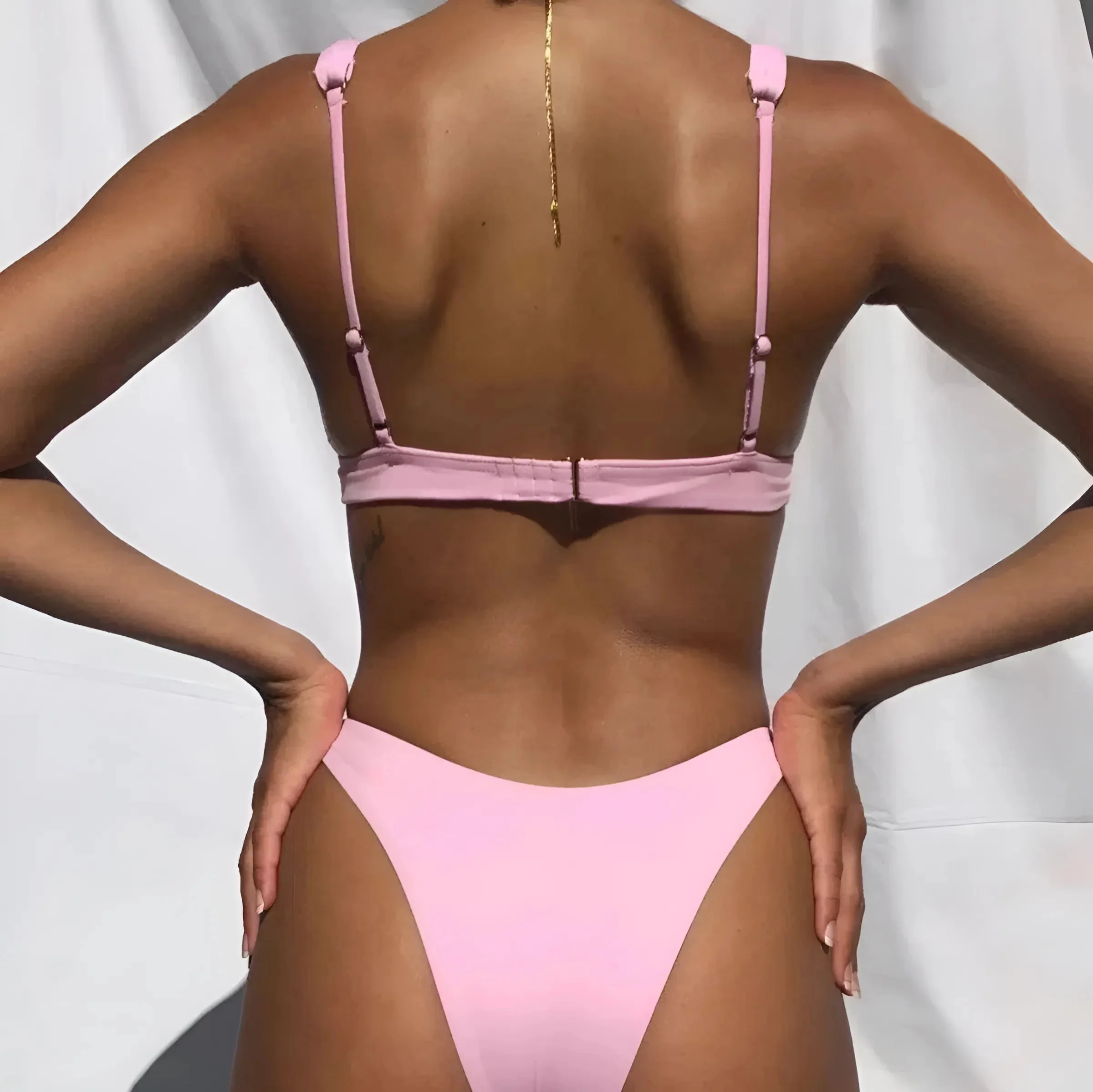 Plongez dans l’été avec notre magnifique ensemble de bikini deux pièces, conçu pour mettre en valeur votre silhouette avec des coques en forme de triangle et des bas taille haute. Choisissez votre couleur préférée et faites des vagues—votre journée parfaite à la plage vous attend !