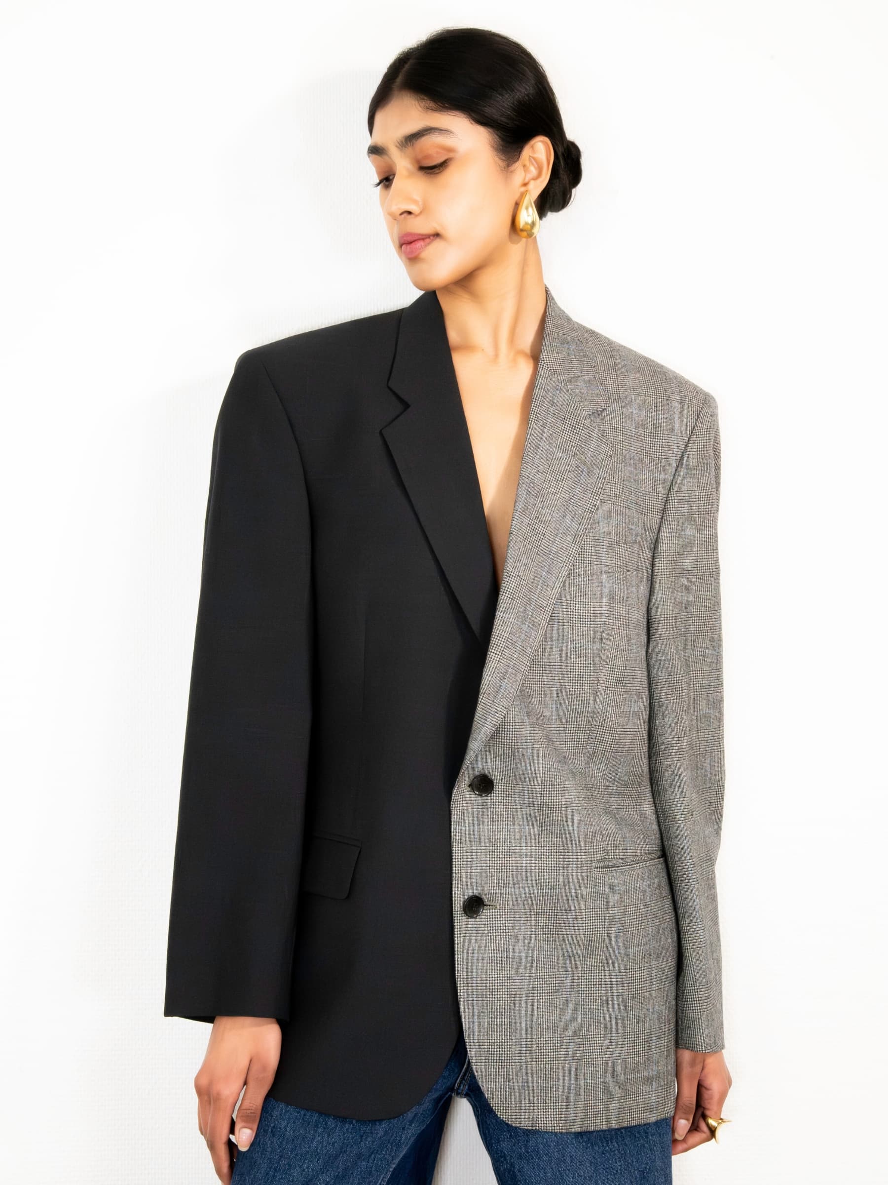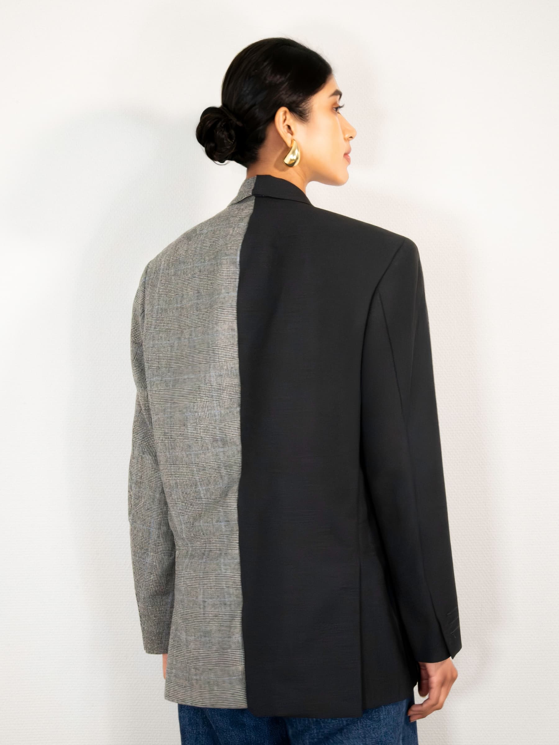 Fabriqué avec soin à Paris (France). Ce blazer est une pièce unique réalisée à partir de blazer de seconde main en laine vierge, pour une mode responsable.