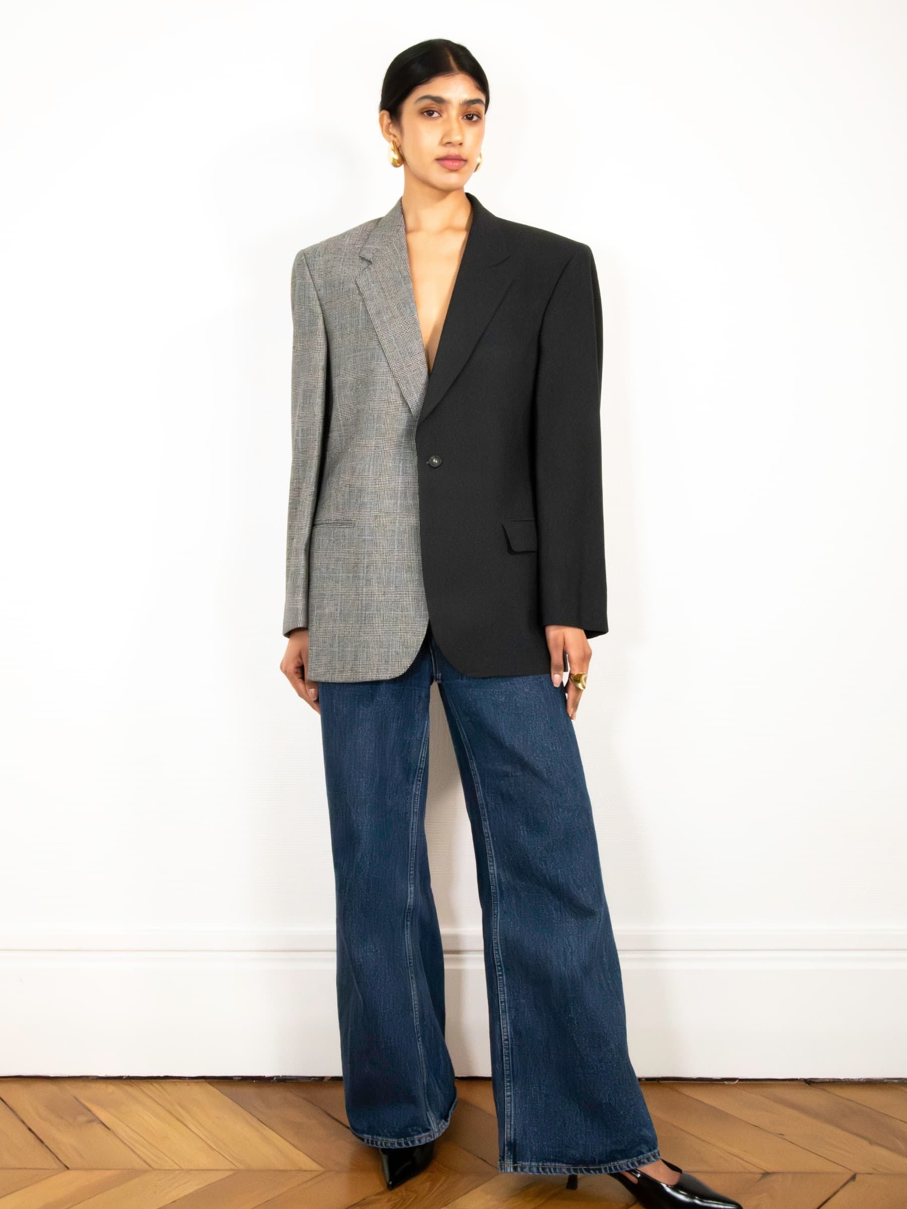 Fabriqué avec soin à Paris (France). Ce blazer est une pièce unique réalisée à partir de blazer de seconde main en laine vierge, pour une mode responsable.