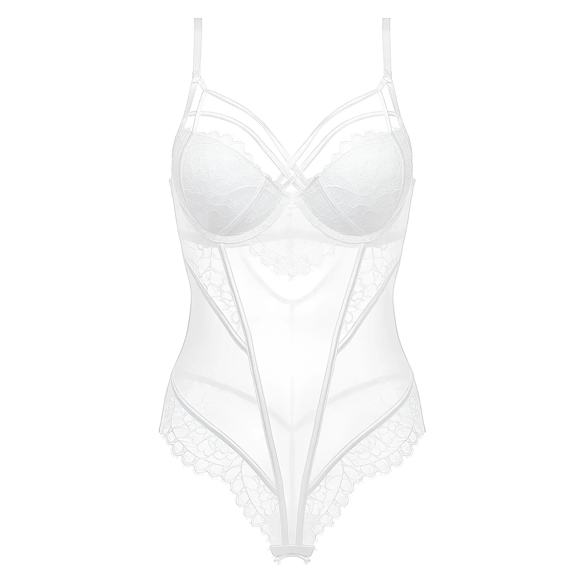 Design à bretelles avec plusieurs fines bretelles Détails en dentelle transparente sur les côtés Coques à armatures pour le soutien Couleur blanche avec une silhouette ajustée Embrassez votre élégance avec notre magnifique lingerie blanche, présentant un design à bretelles et des détails en dentelle délicate qui mettent en valeur votre beauté naturelle. Ressentez le soutien […]