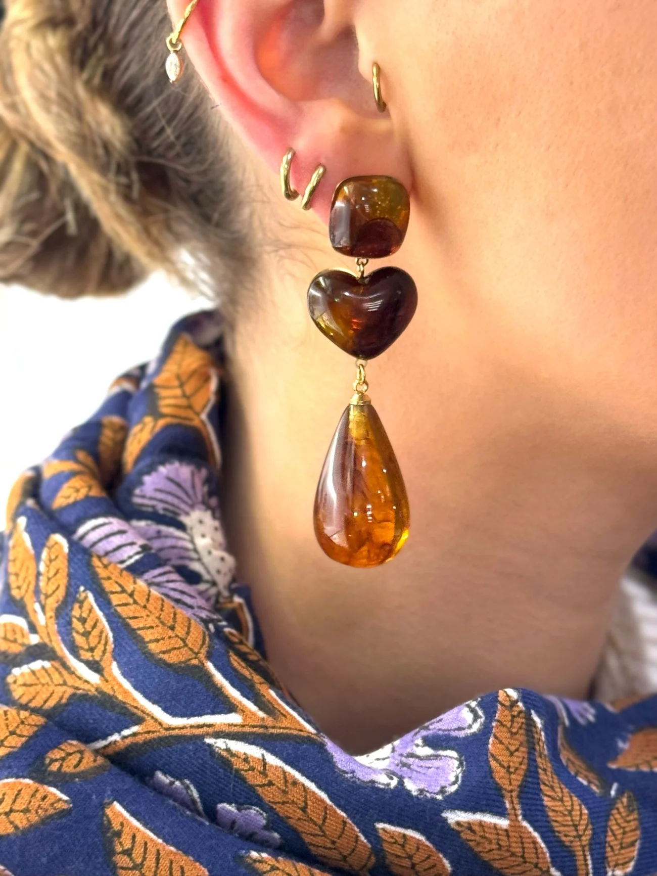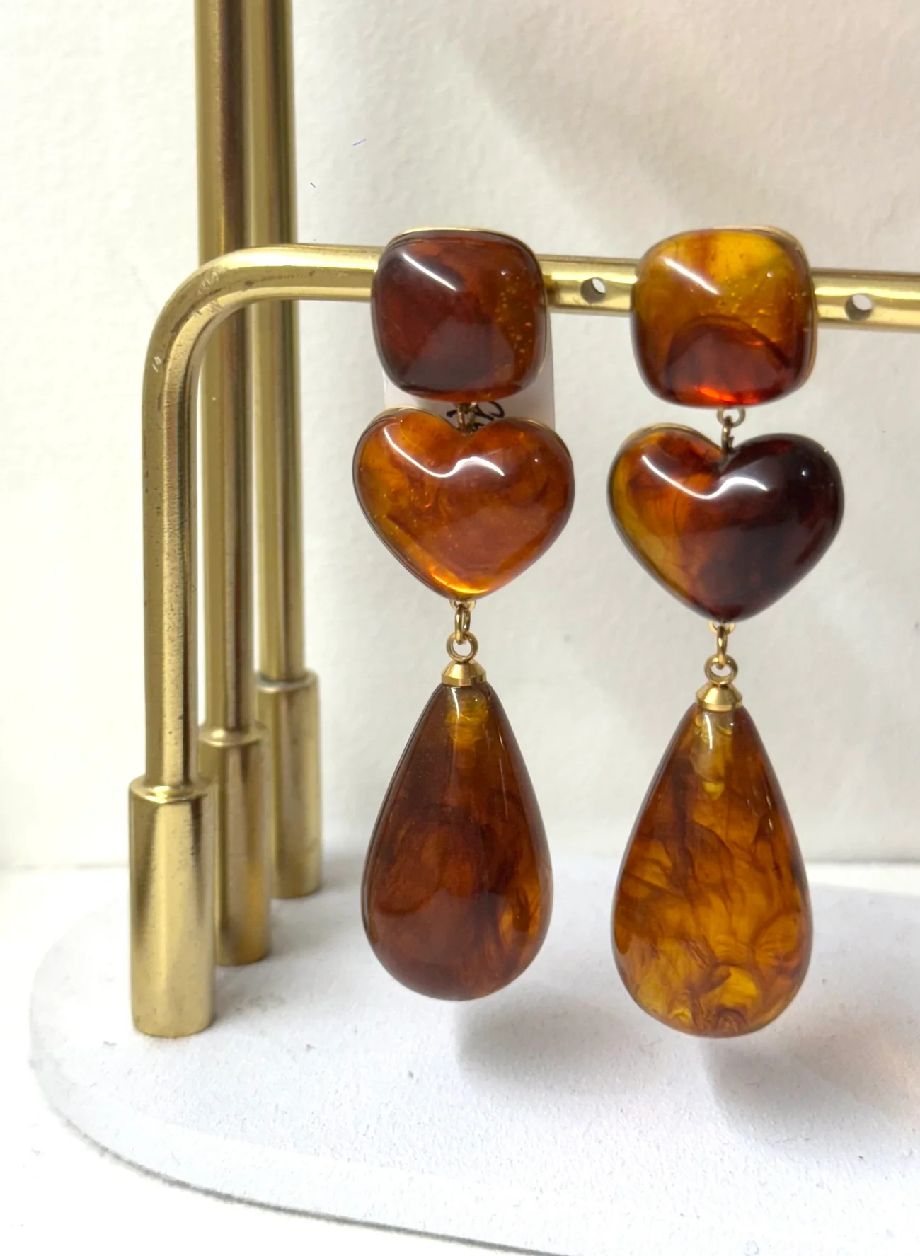 BOUCLE D’OREILLE PENDANTE – COEUR – AMBRE