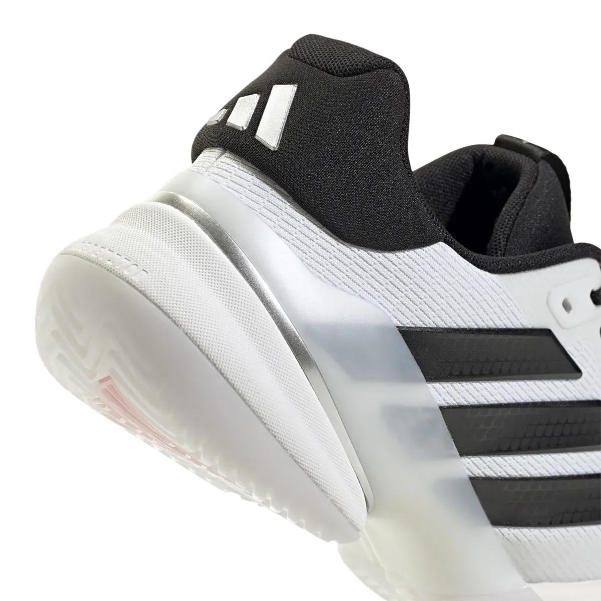 Chaussure adidas barricade orientée contrôle et stabilité: maintien latéral verrouillé, châssis rigide pour les appuis violents, semelle All Court résistante. Le choix pour défendre fort et tenir les échanges sans perdre en précision.