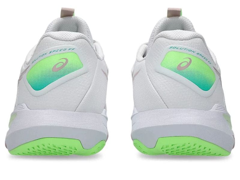 Chaussure asics solution speed FF4, la “speed” la plus légère d’ASICS: très proche du sol, ultra‑réactive et accroche polyvalente All Court. Coloris White/Morganite élégant.