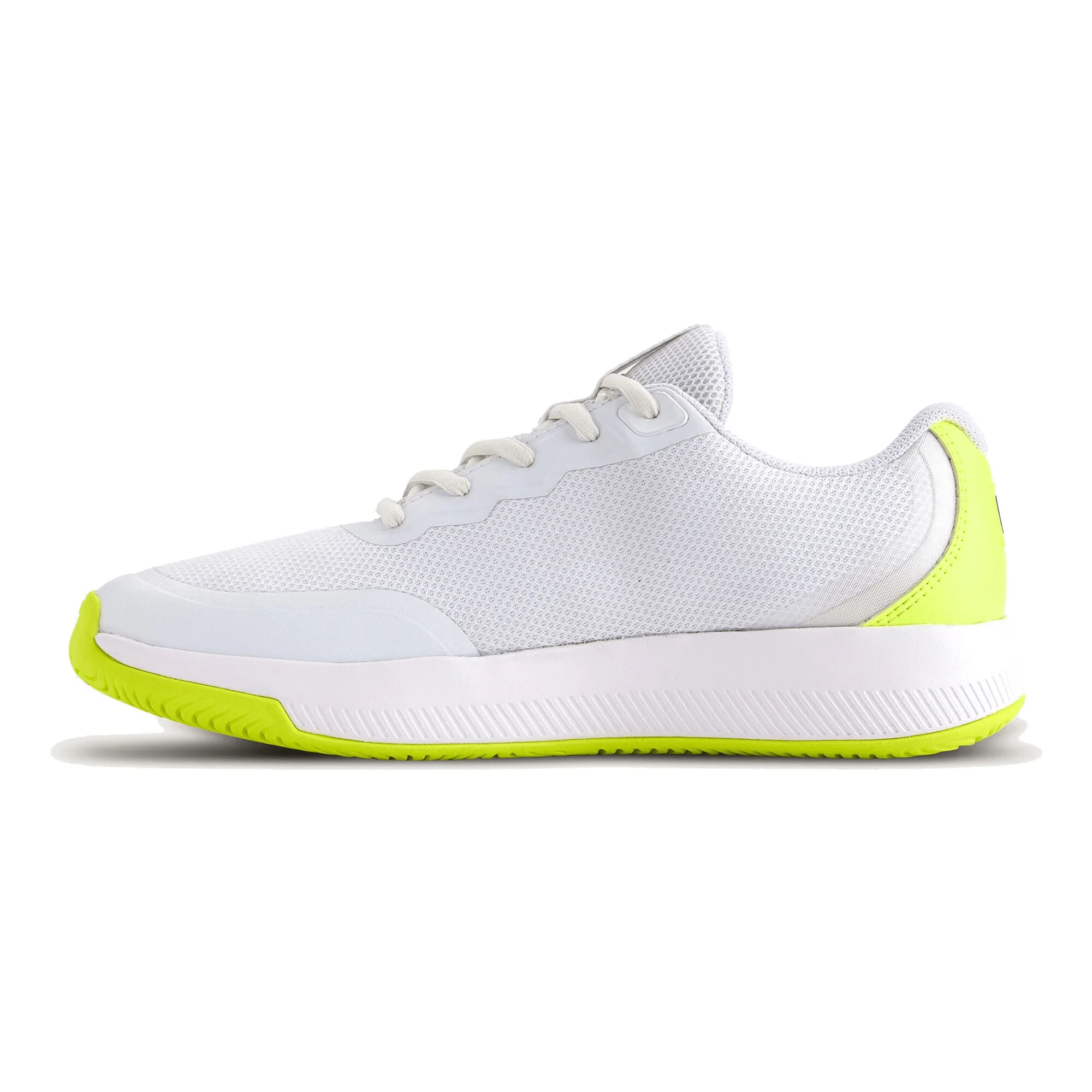 Avec sa gamme de chaussures Intrigue ,Wilson innove en proposant des modèles créés pour les femmes afin de se concentrer sur leurs besoins. Le modèle Wilson Intrigue Pro Toutes Surfaces s’adresse aux joueuses régulières recherchant du confort et du dynamisme. Le coloris blanc et jaune fluo sera très éléga