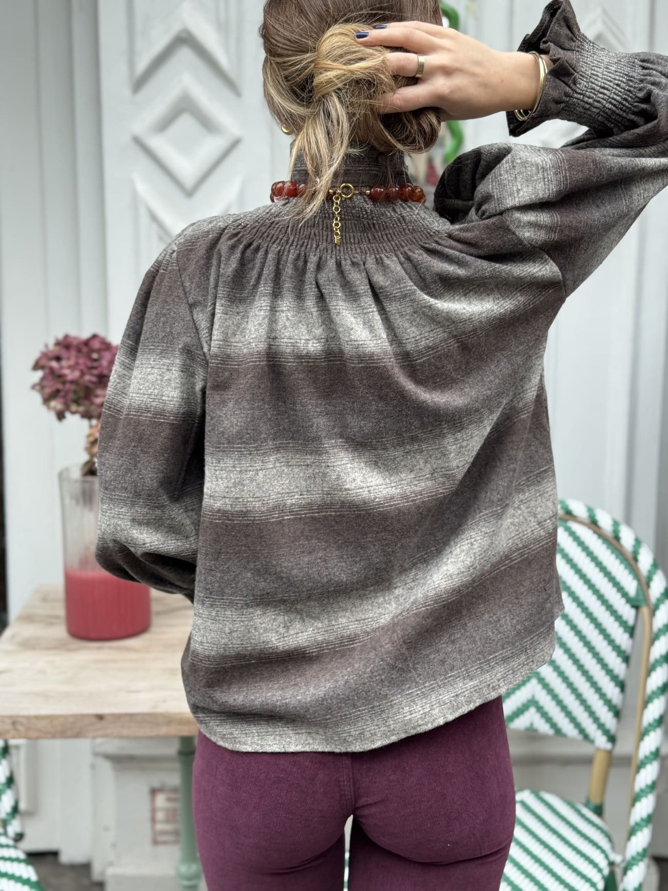 Chemise col victorien grise dégradée : élégance et douceur assurées Cette chemise grise dégradée apporte une touche raffinée et féminine à votre garde-robe. Son col victorien à volants délicats et son toucher doux la rendent parfaite pour allier confort et style avec une note romantique et moderne. On aime Le col victorien et les manches […]