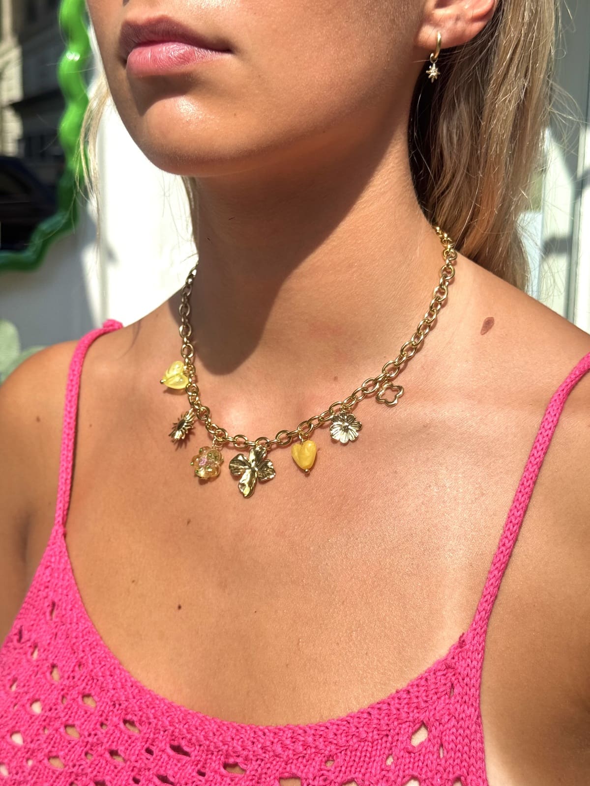 Collier Cœur Jaune – Chaîne Dorée & Charms