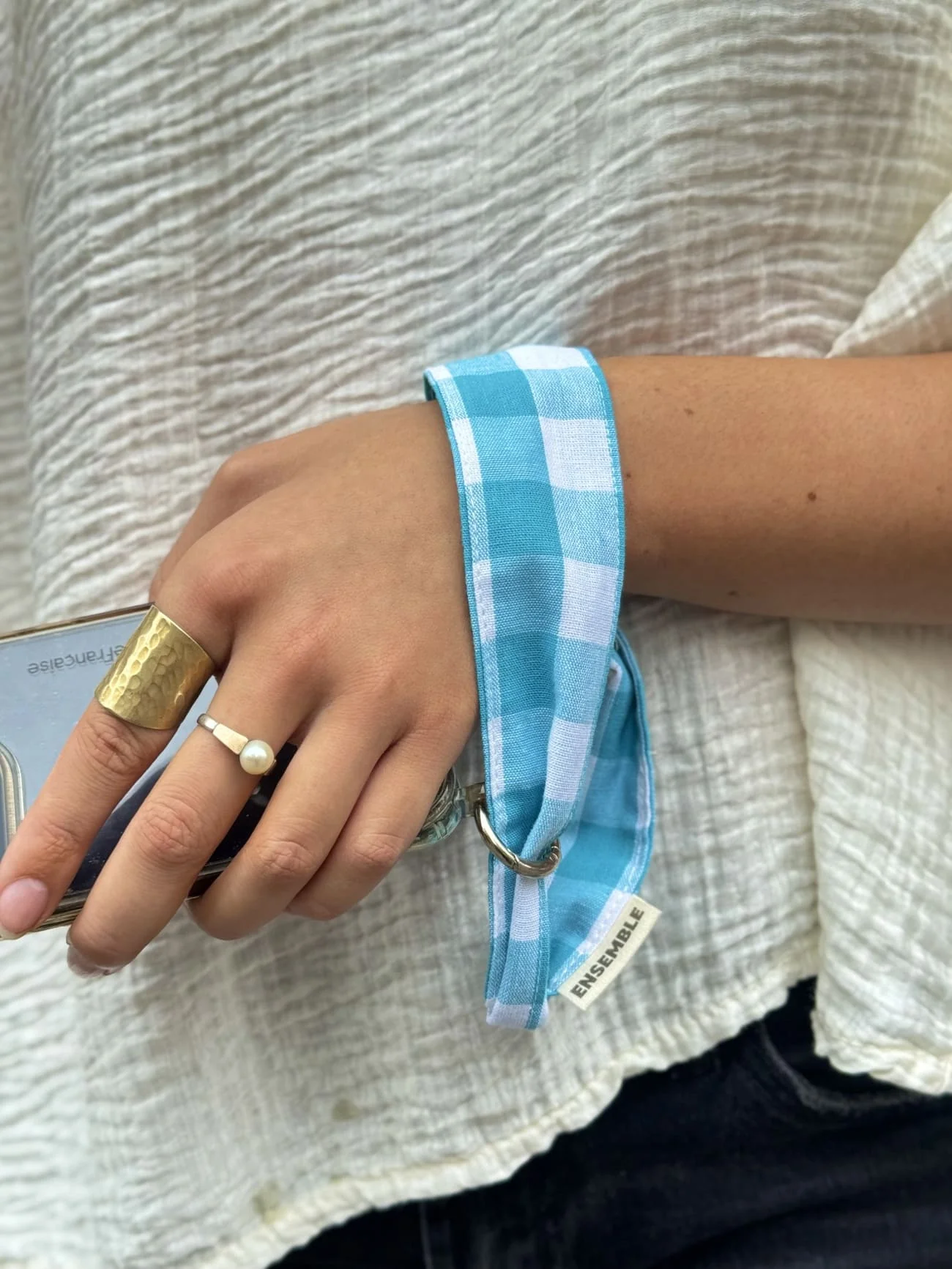 CORDON DE TELEPHONE MAIN VICHY BLEU – ENSEMBLE CREATION