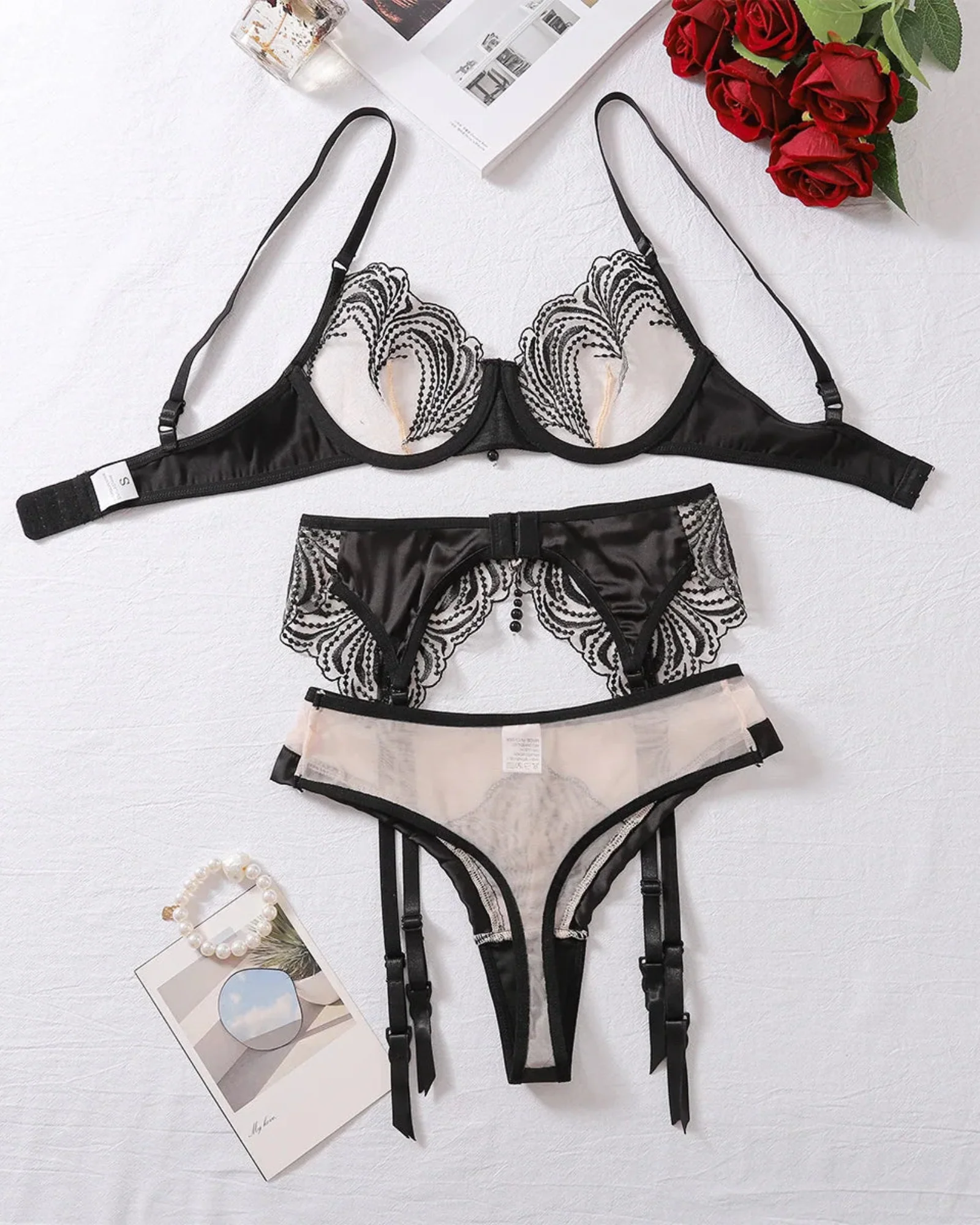 Enfilez cet ensemble et ressentez comment chaque élément enveloppe votre corps, vous apportant confiance en vous et rendant chaque moment exceptionnel. Découvrez la magie de cette lingerie et sentez-vous comme une reine.