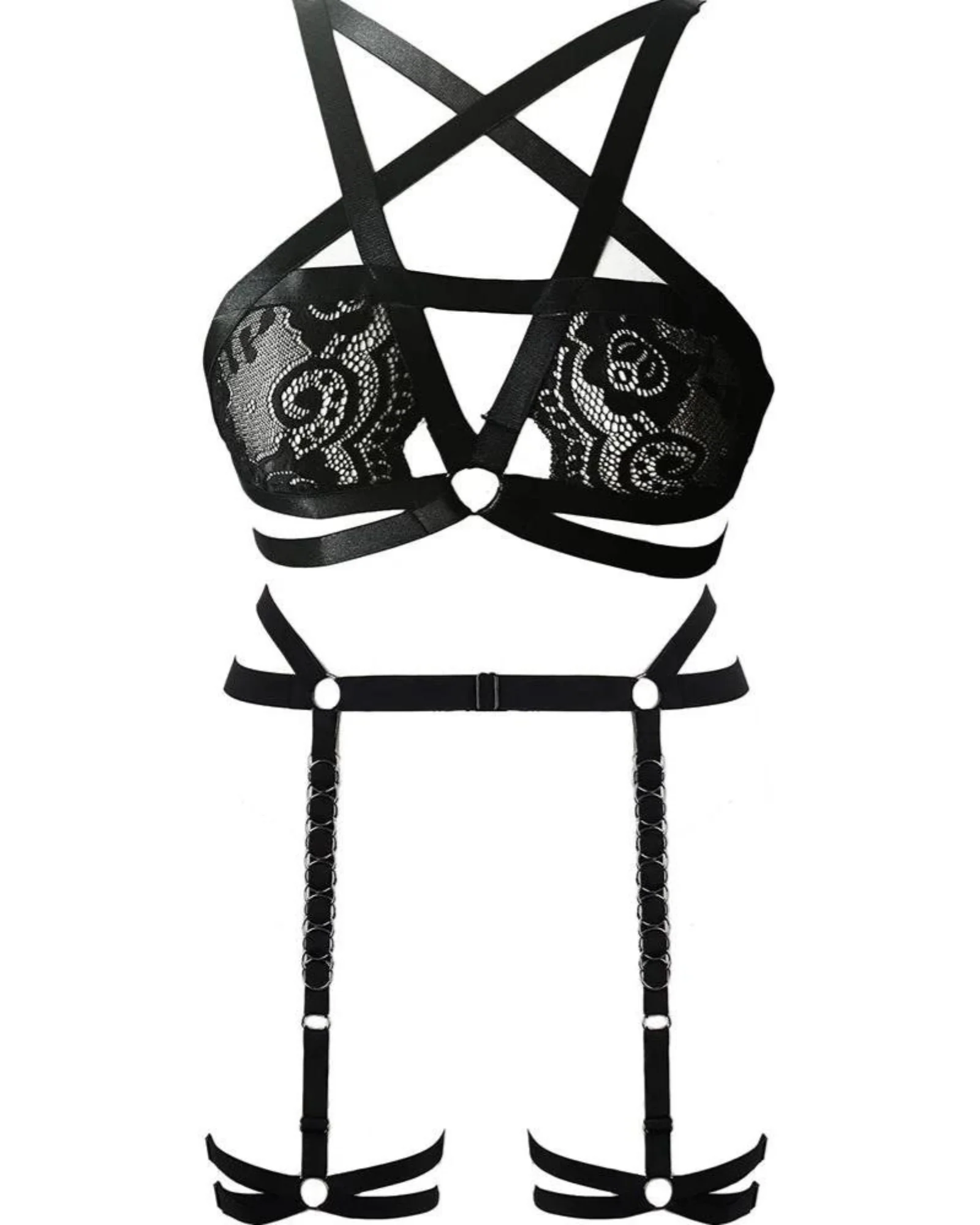 Les bandes réglables assurent un ajustement parfait, tandis que les fermetures robustes garantissent un confort de port. Les détails en dentelle ajoutent une touche d’élégance, et le design audacieux rend chaque moment dans cette lingerie exceptionnel.