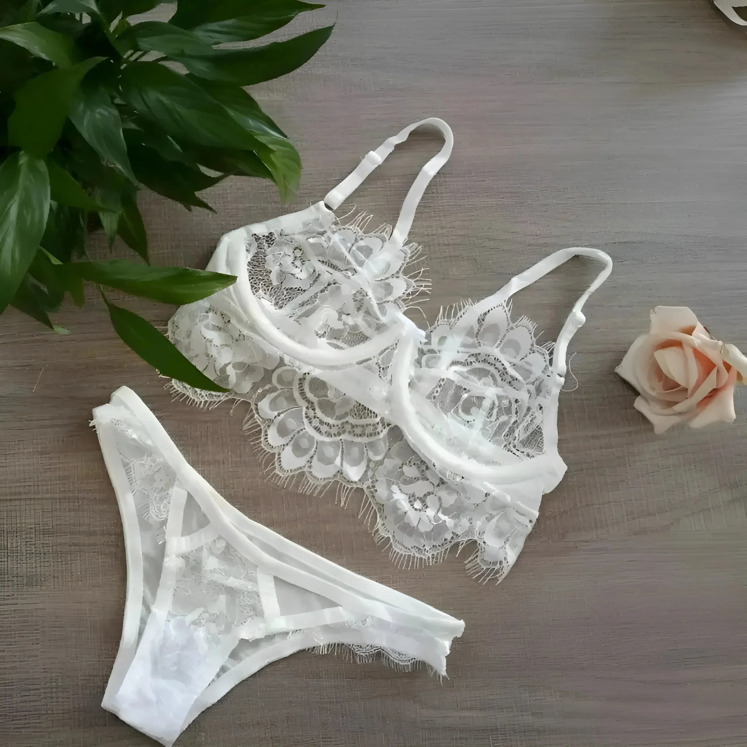 - Ensemble de lingerie en dentelle blanche