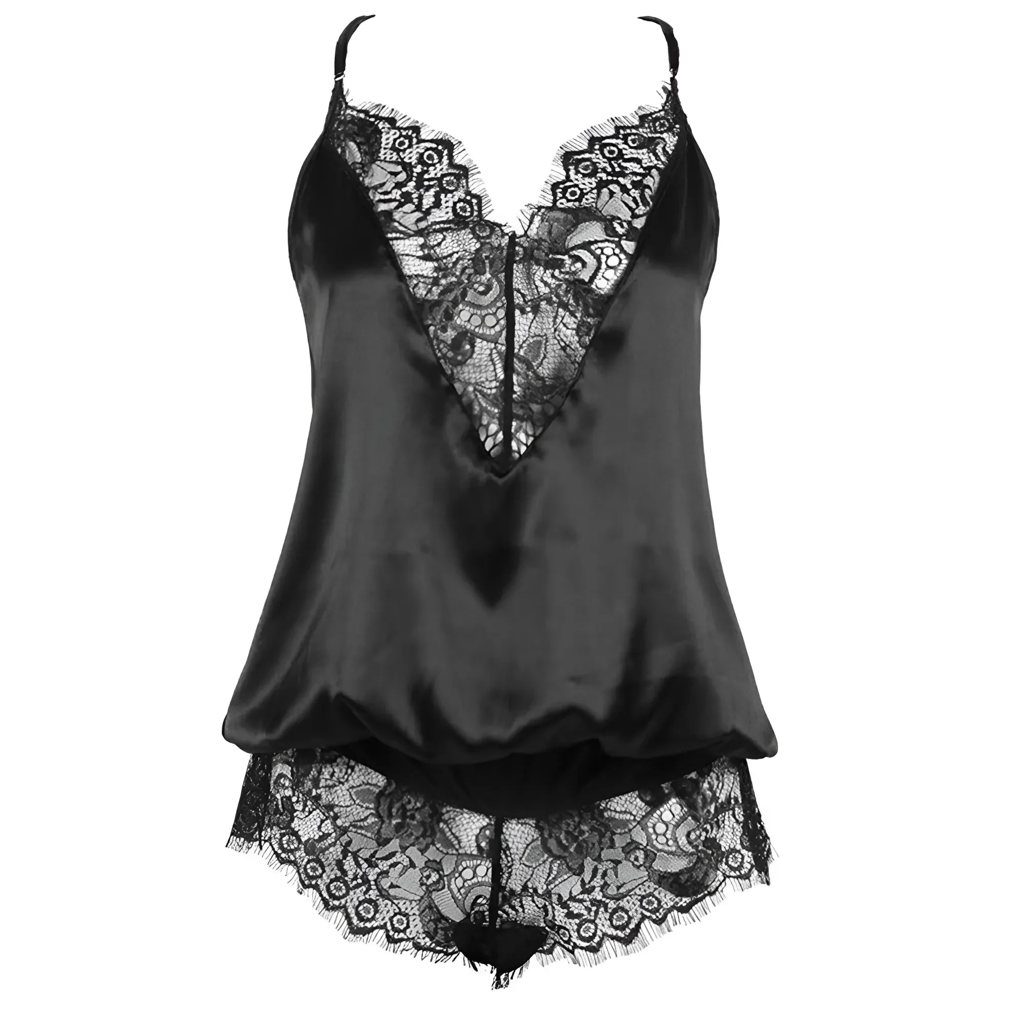 Offrez-vous la sensation luxueuse de notre ensemble deux pièces en satin, avec des détails en dentelle délicate et des bretelles flatteuses qui célèbrent votre féminité. Choisissez entre le noir classique ou le blanc et élevez votre collection de vêtements d’intérieur dès aujourd’hui !