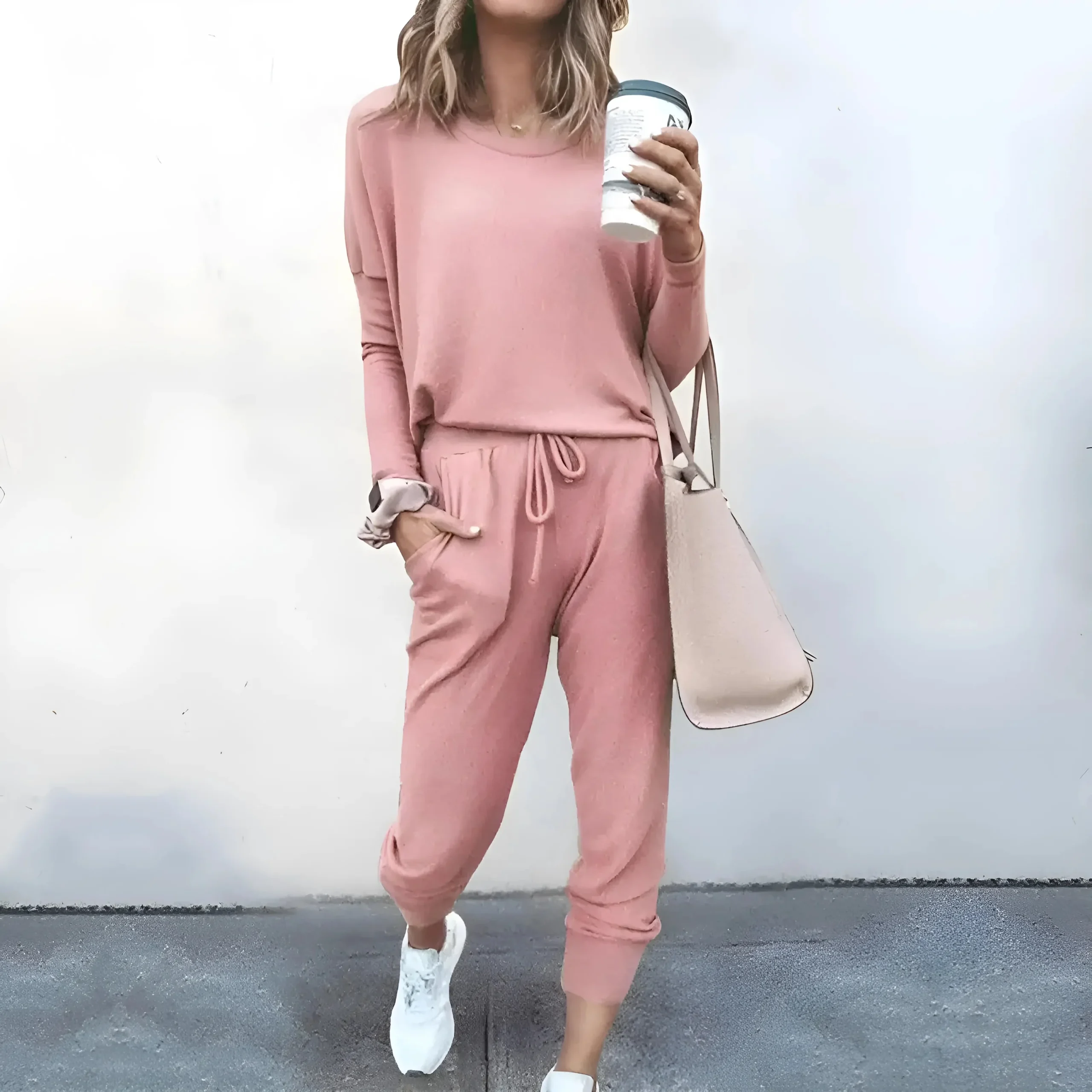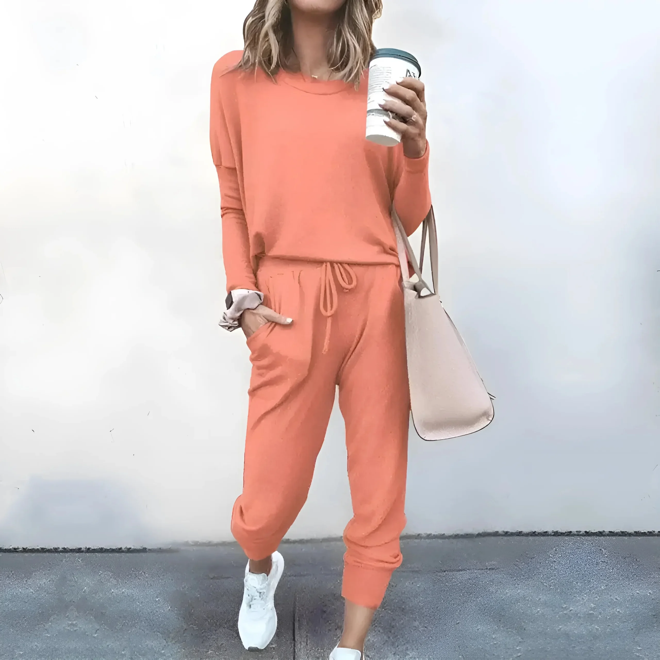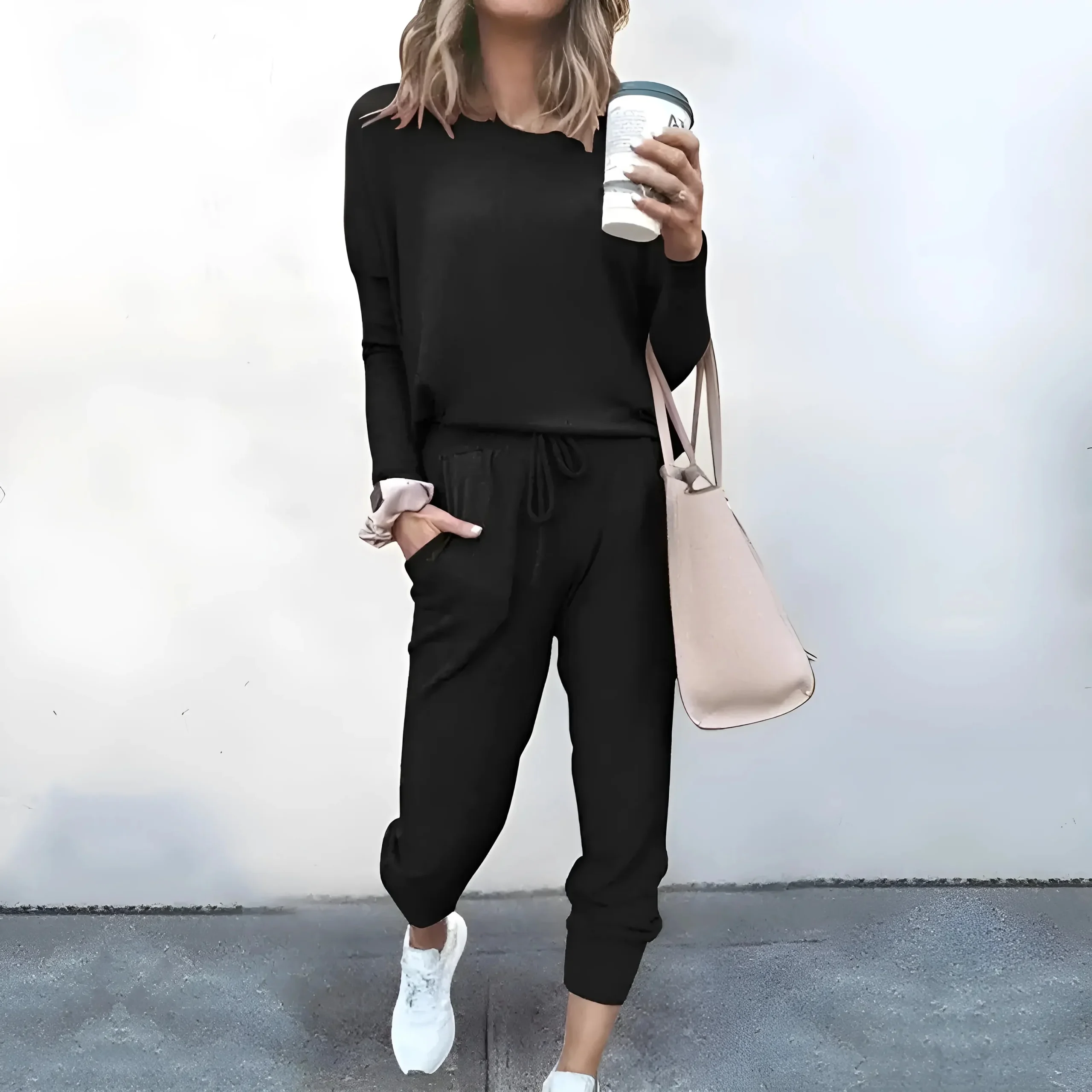 Ensemble de survêtement ample Haut à manches longues avec col rond taille élastique avec cordon de serrage sur le pantalon Associé à des baskets blanches et un sac à main beige Couleurs disponibles : Rose, Graphite, Gris, Orange, Beige, Vert, Bleu, Noir Élevez votre confort et votre style avec notre ensemble de survêtement ample, parfait […]
