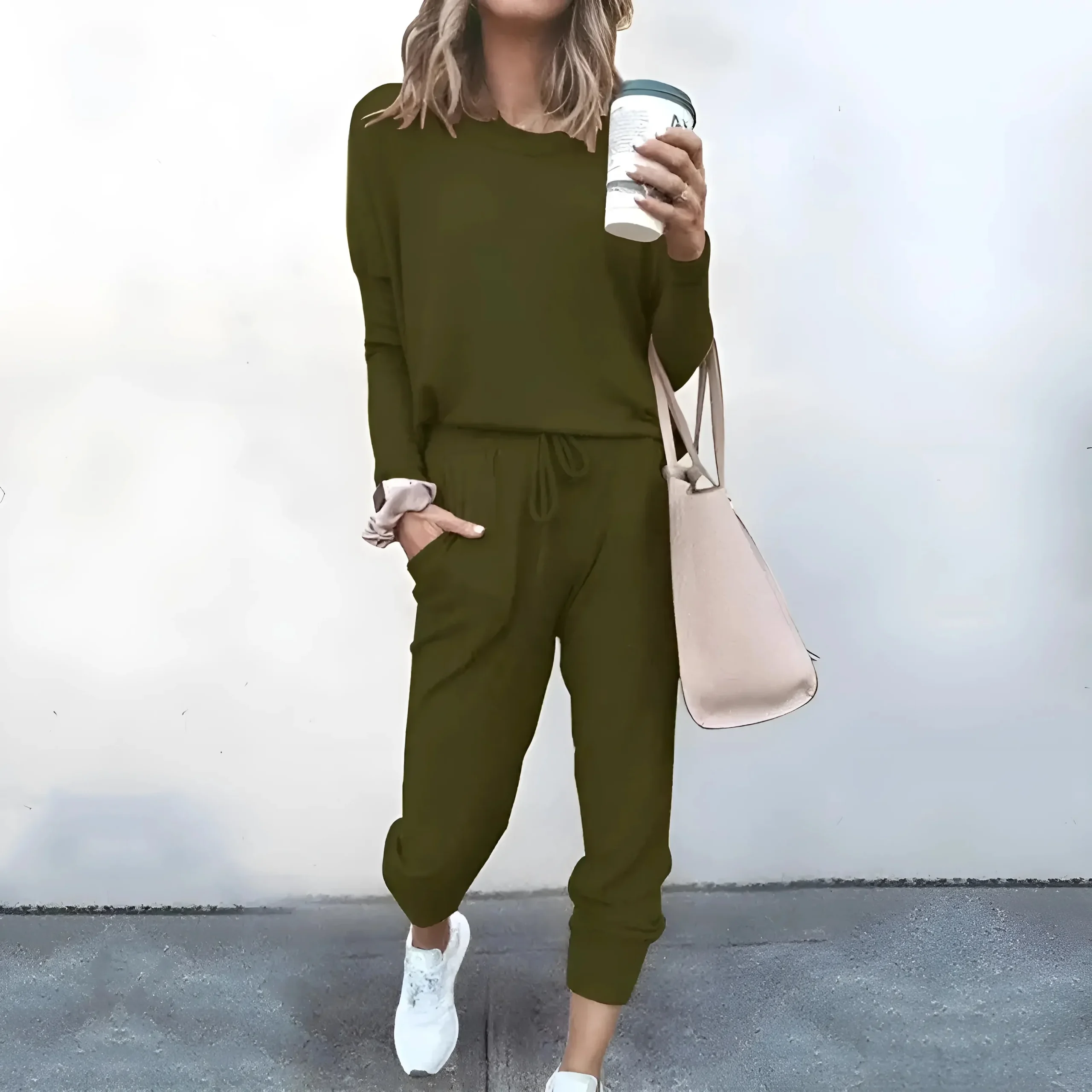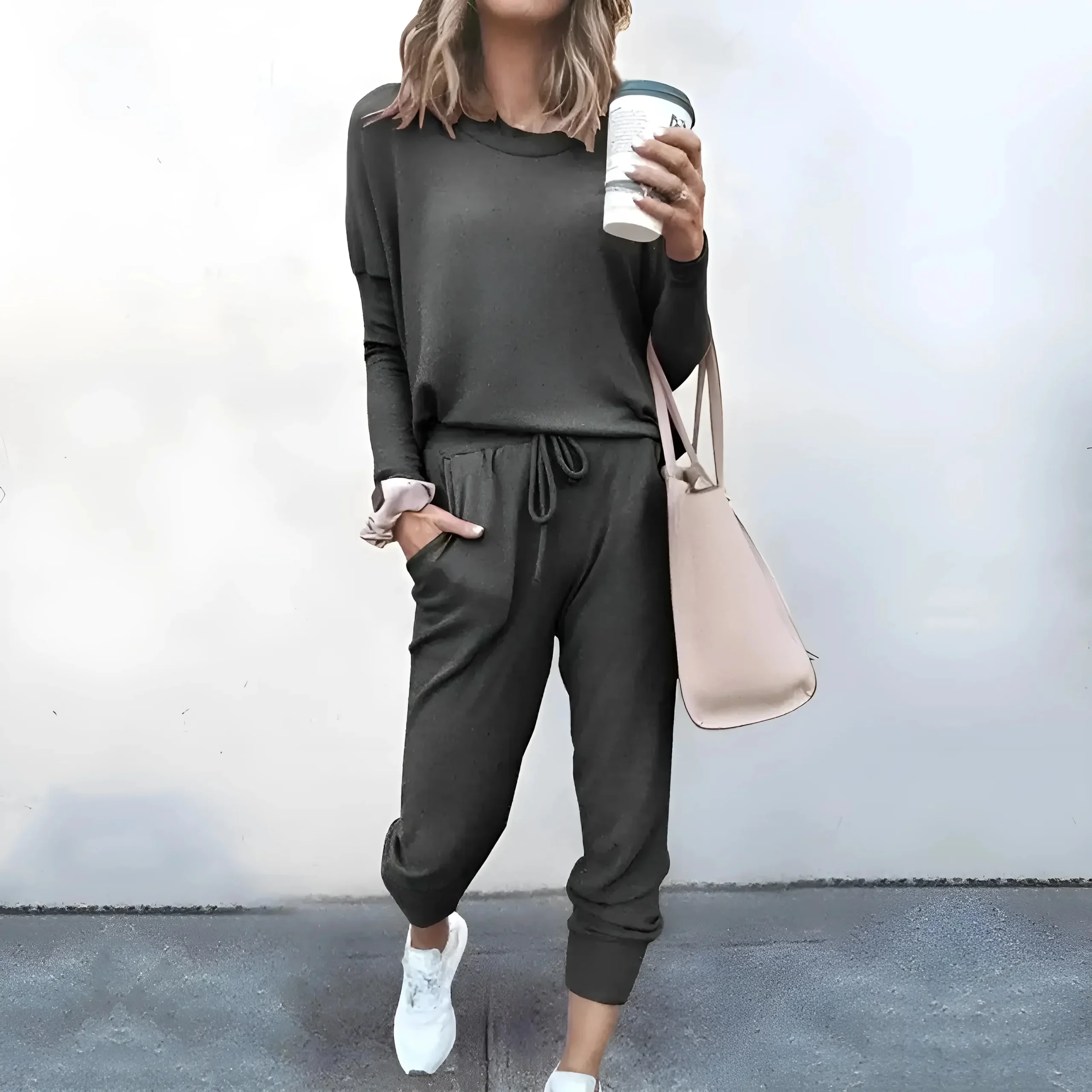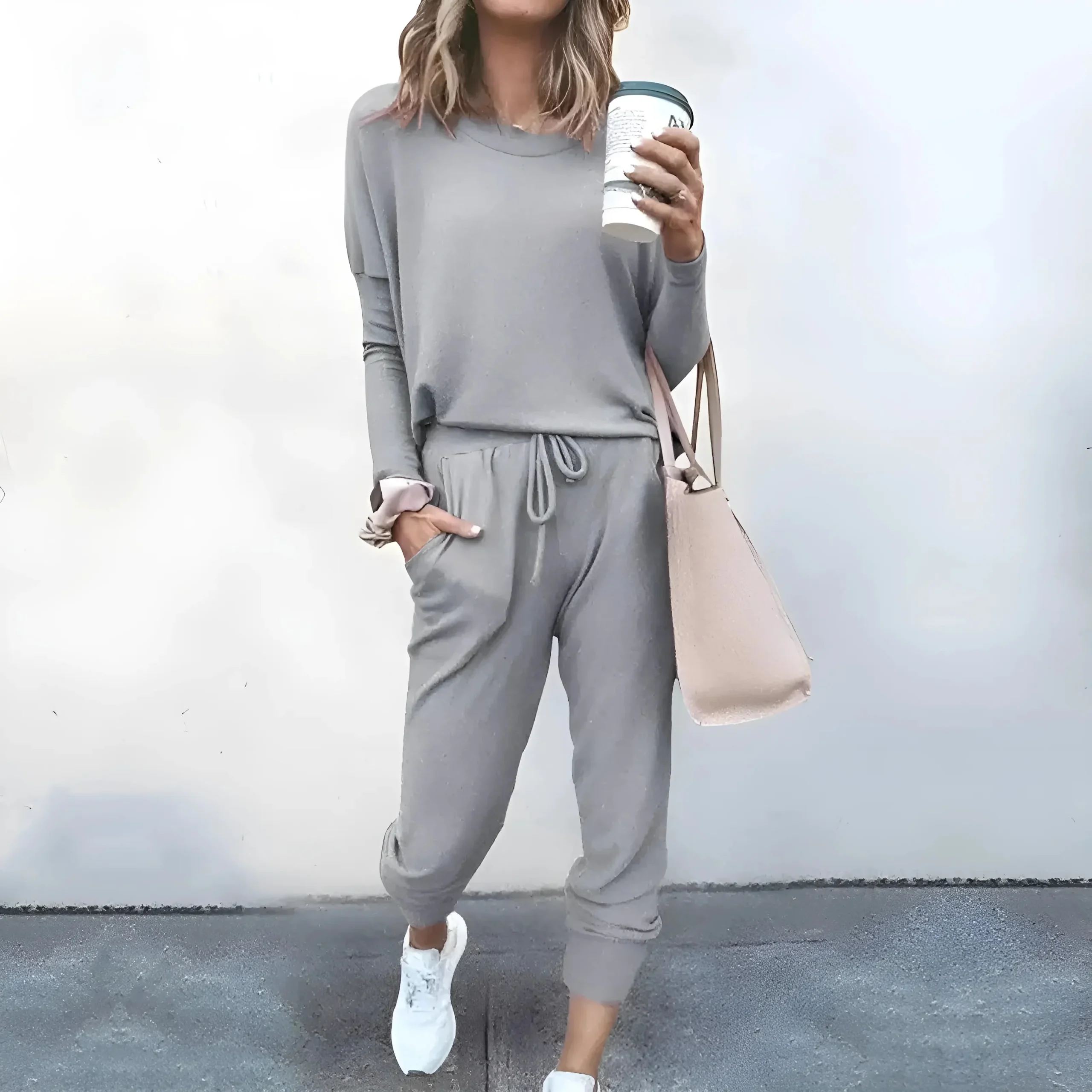 Ensemble de survêtement ample Haut à manches longues avec col rond taille élastique avec cordon de serrage sur le pantalon Associé à des baskets blanches et un sac à main beige Couleurs disponibles : Rose, Graphite, Gris, Orange, Beige, Vert, Bleu, Noir Élevez votre confort et votre style avec notre ensemble de survêtement ample, parfait […]