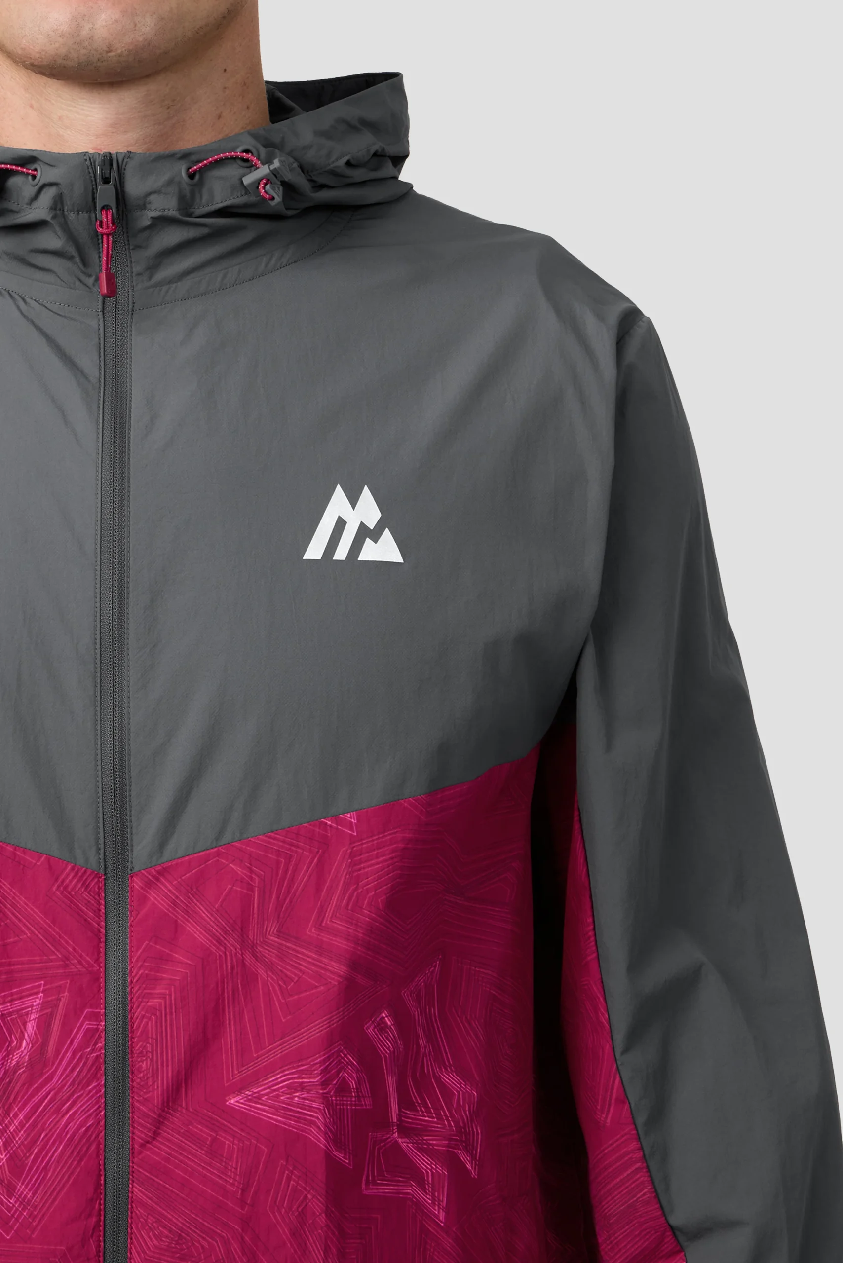 Geo M Print Windbreaker – Slate Grey/Cherry