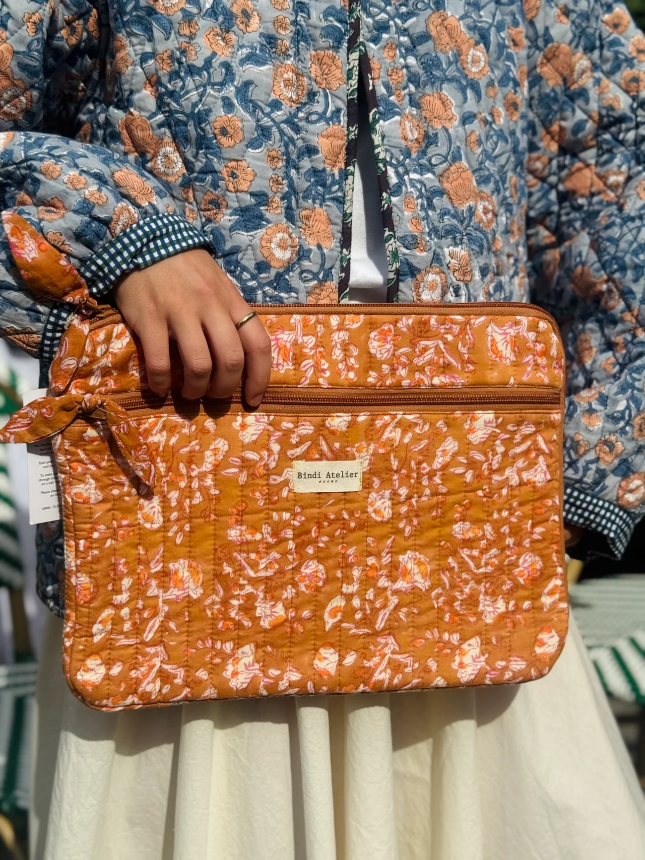 HOUSSE ORDINATEUR FLEURS ORANGE