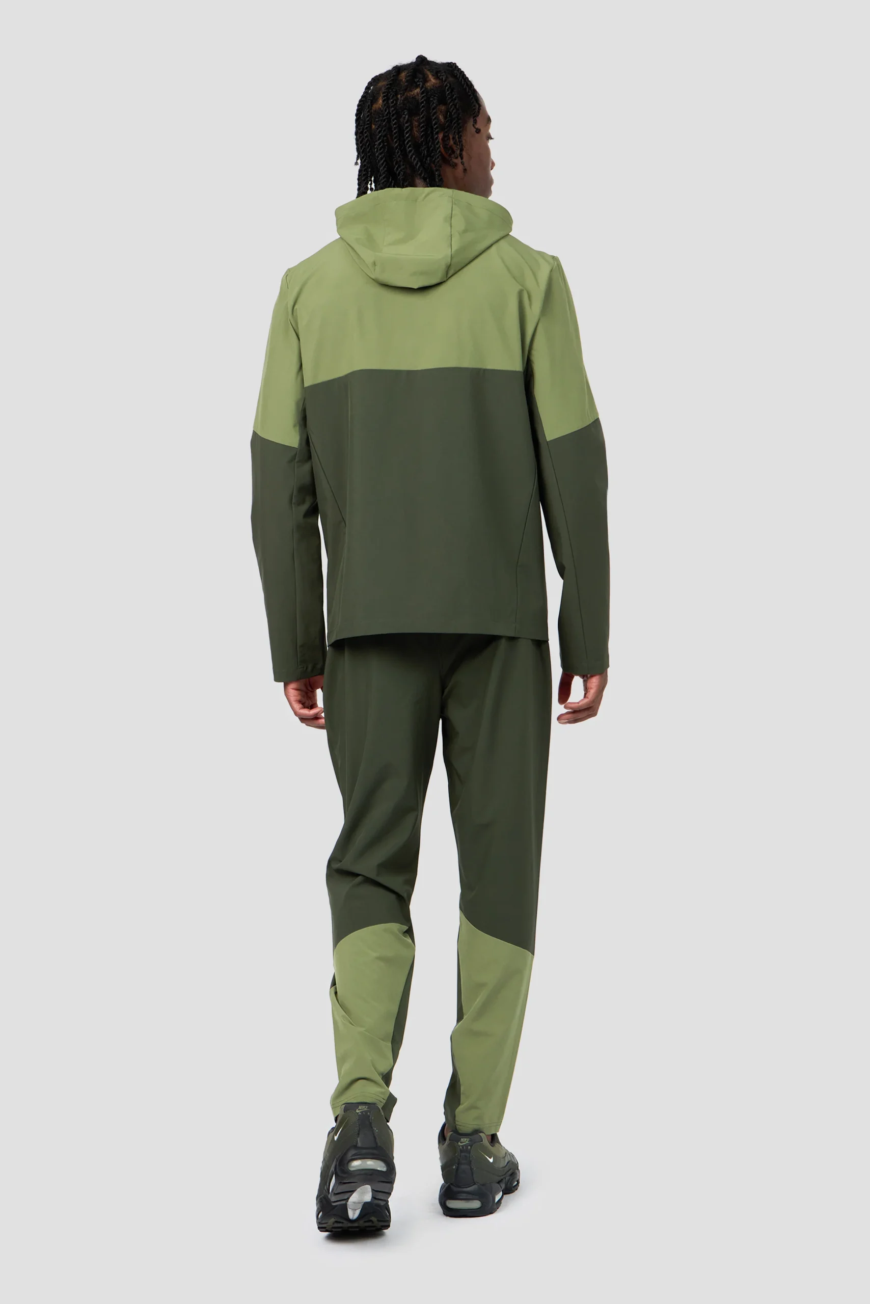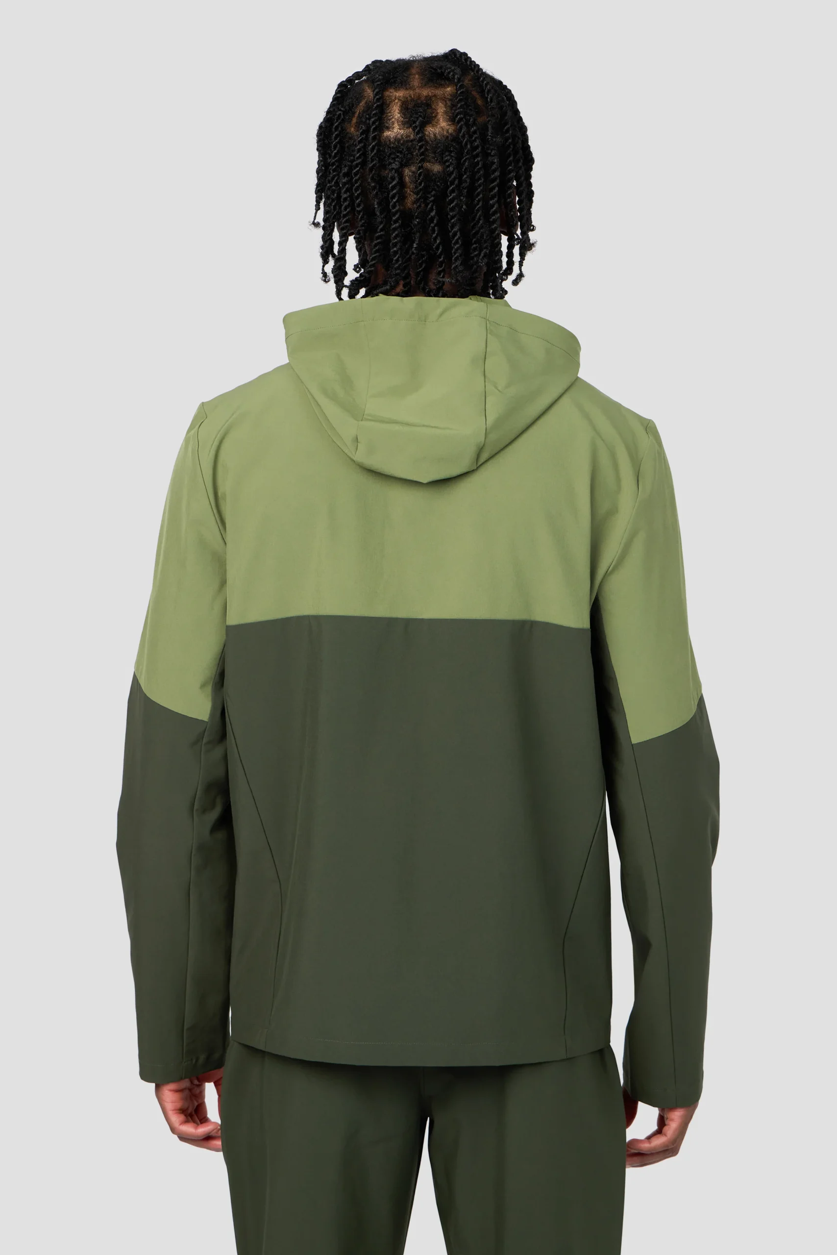 Engineered for performance and style, this jacket features stretch woven fabric, contrast panel design, and reflective bungee hood for enhanced visibility. Secure essentials with zip chest and lower pockets.