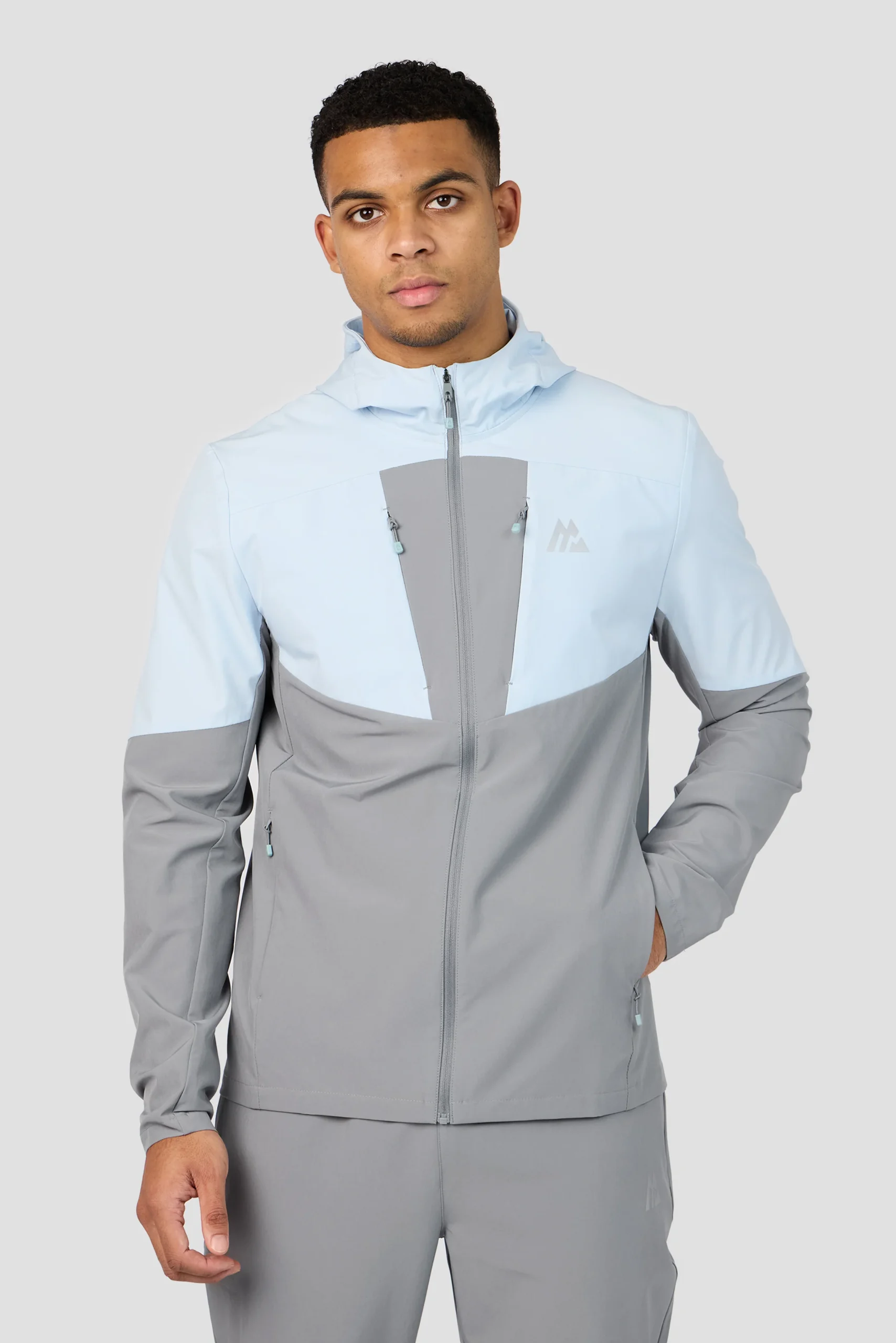 Engineered for performance, this jacket features stretch woven fabric for superior mobility, modern contrast panel design, and reflective details for visibility. Multiple zip pockets ensure secure, convenient storage.