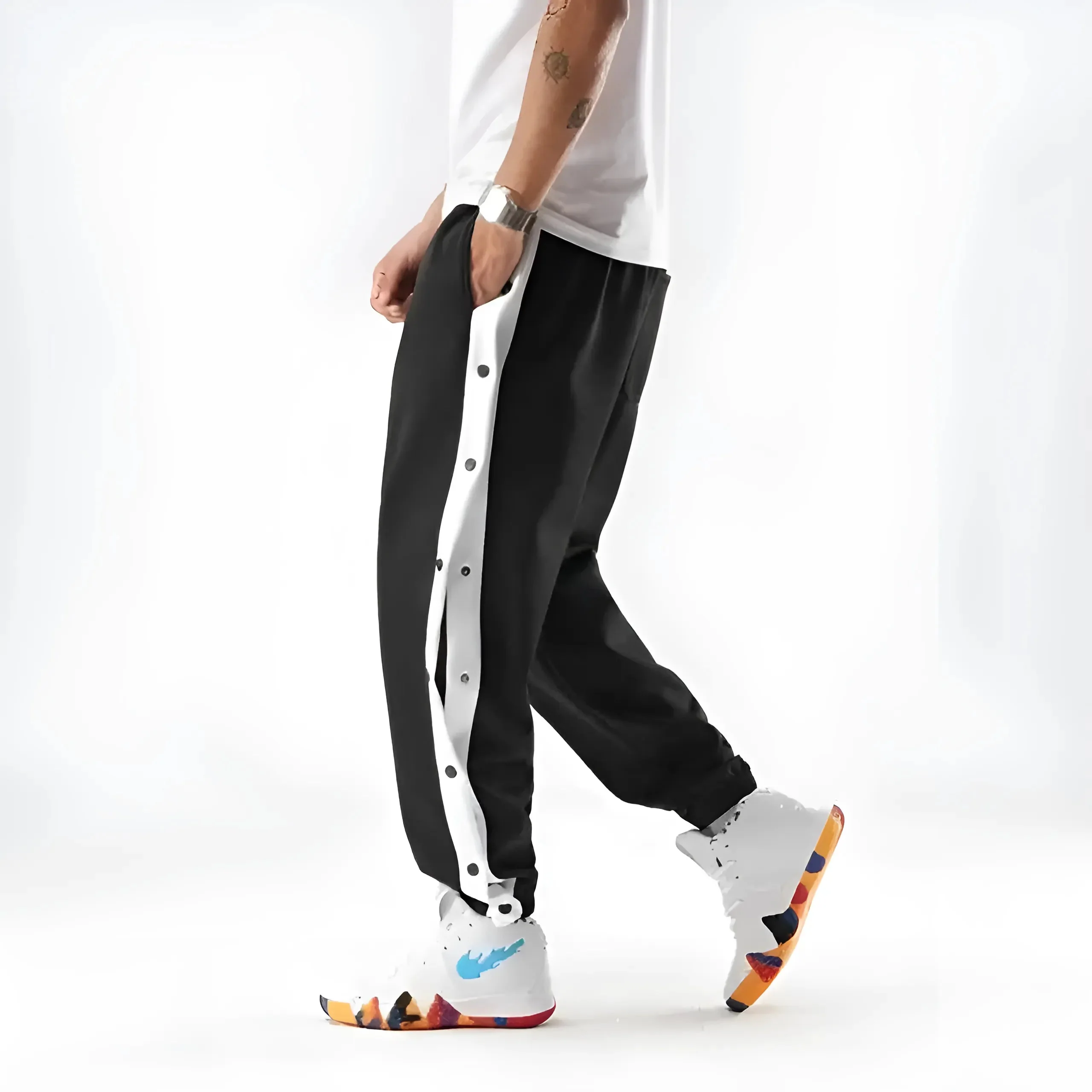 Élevez votre style décontracté avec nos pantalons de survêtement chics, dotés de rayures blanches tendance et de détails ludiques de boutons-pression. Glissez-vous dans le confort et la confiance—choisissez votre couleur préférée aujourd’hui et sortez avec style !