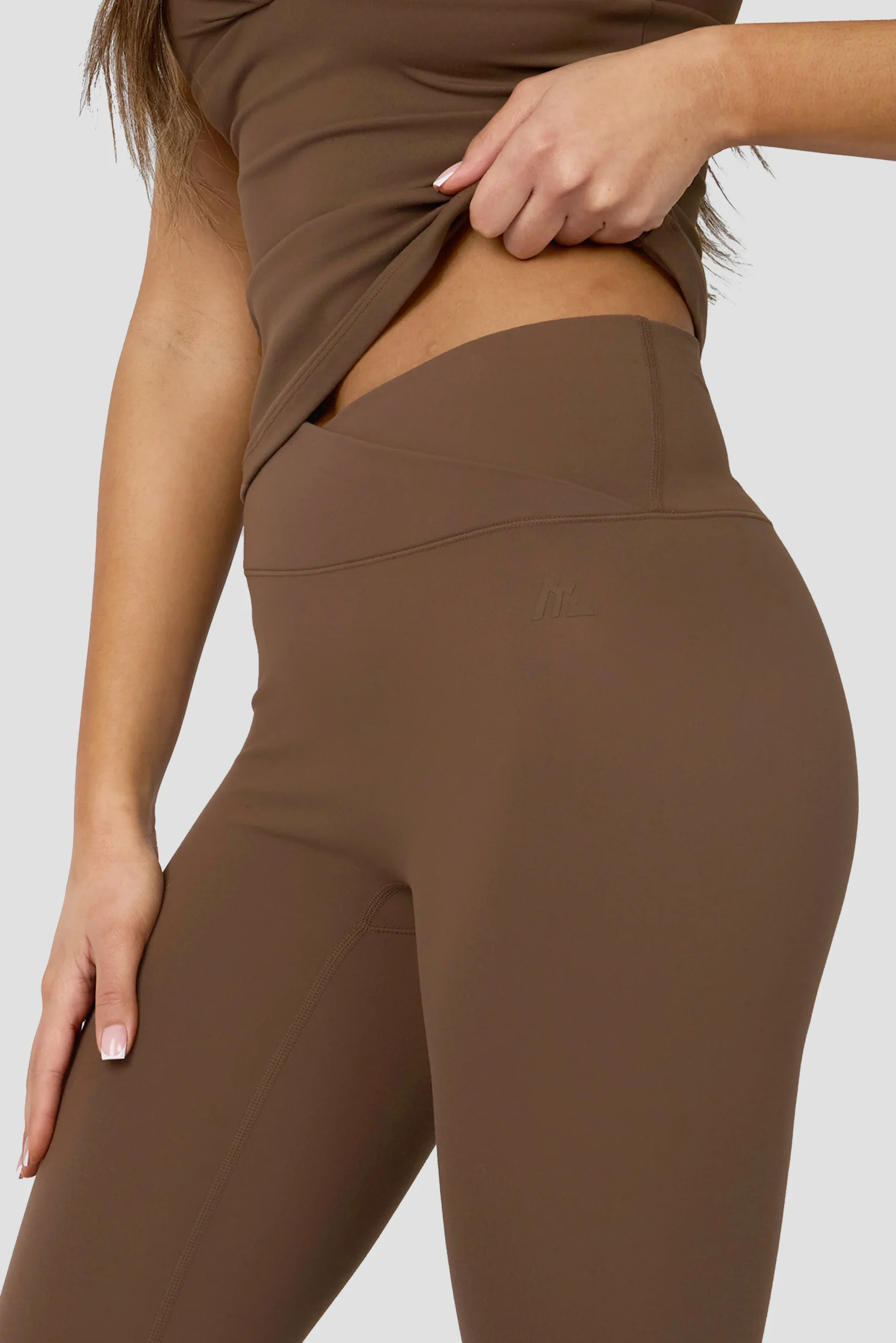 Expertly crafted, these soft fabric flare leggings feature a centre front wrap, a curved waistband at back, and tonal rubberised logo qualities for a refined finish.