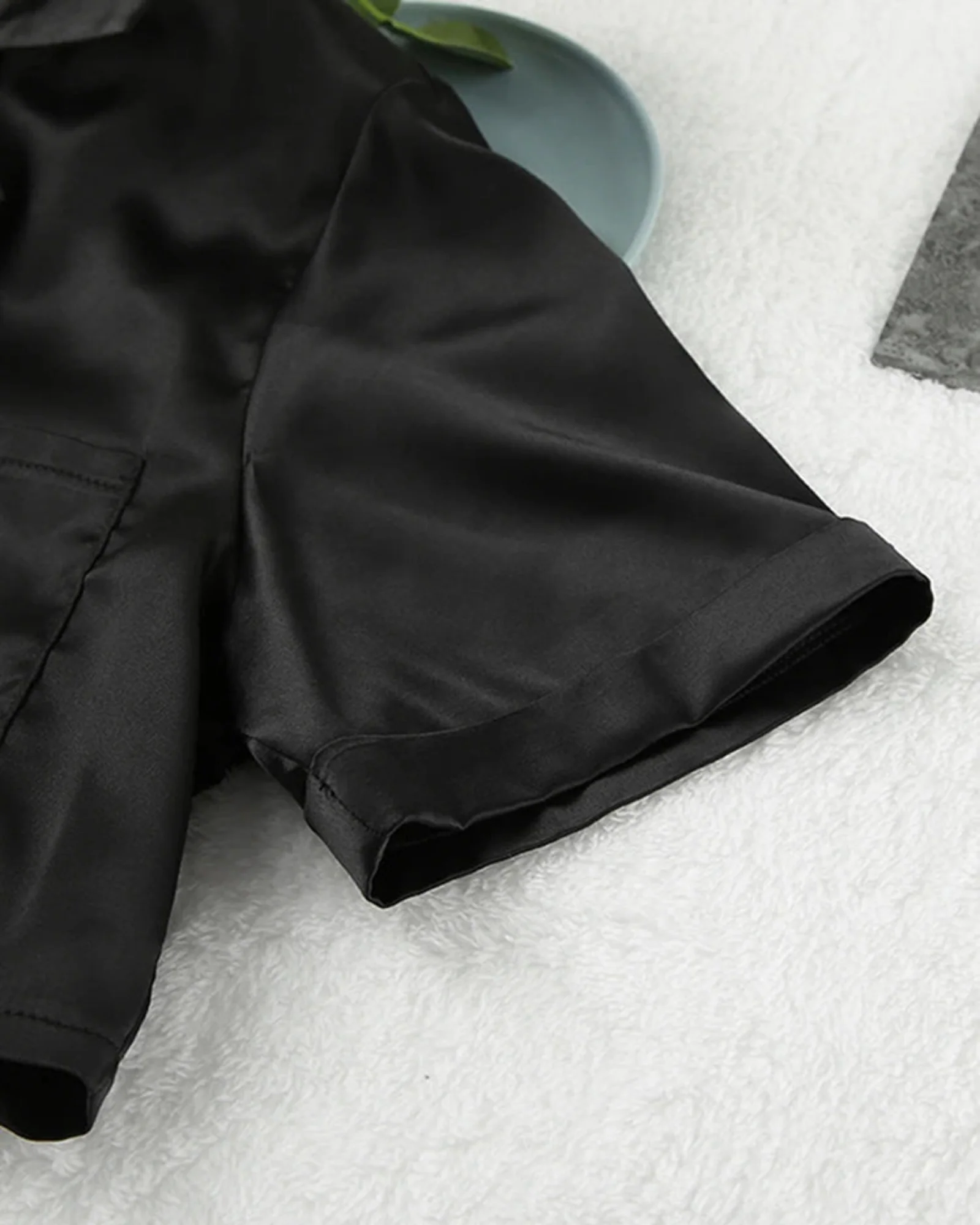 Plongez dans un monde de confort et d’élégance avec ce pyjama. Sa coupe courte et ample vous permet de vous sentir à l’aise, tandis que le tissu satiné enveloppe délicatement votre corps, mettant en valeur sa beauté naturelle. Le col élégant ajoute une touche de sophistication, et la taille élastique assure un ajustement parfait.