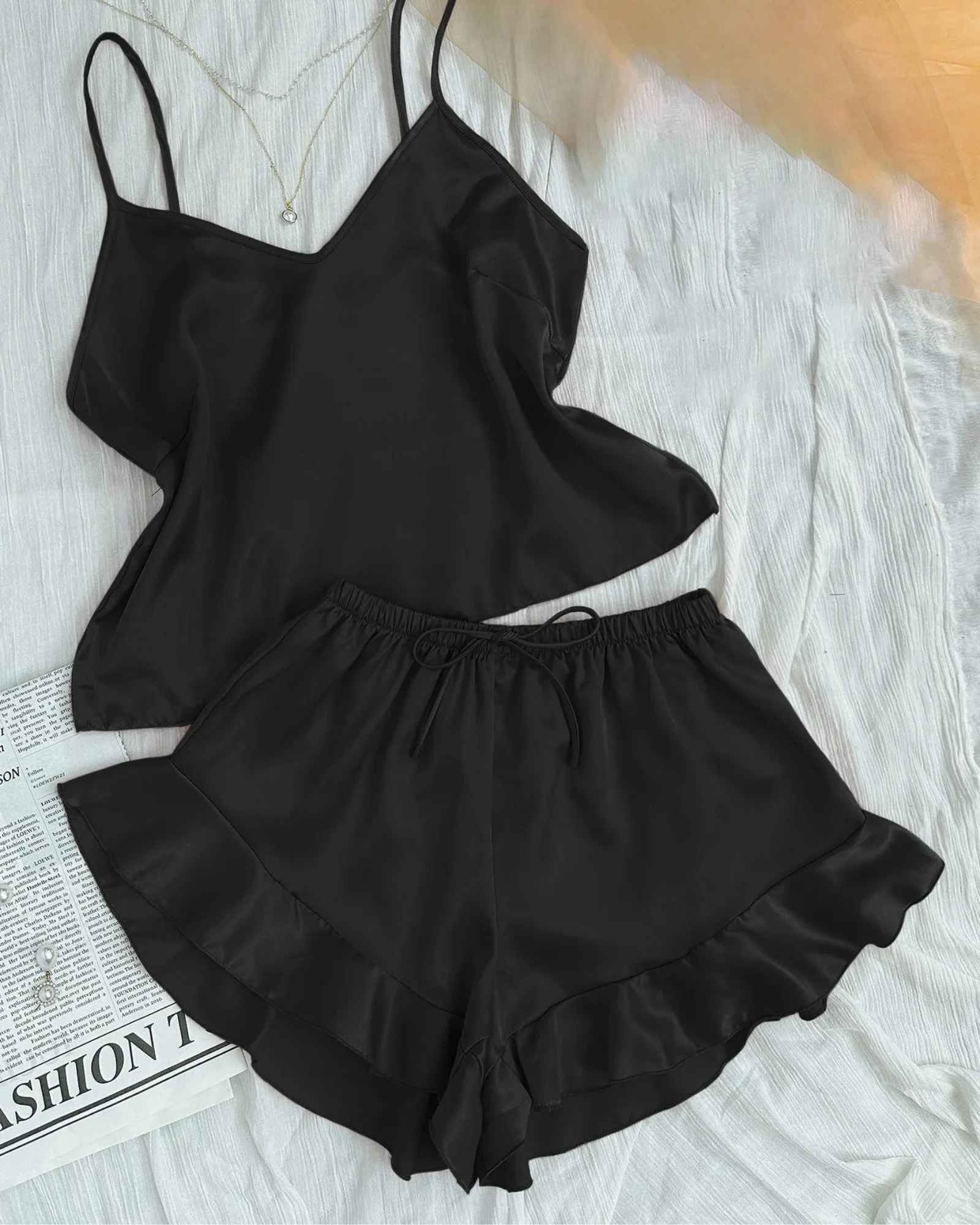 Pyjama femme avec bretelles réglables et volants