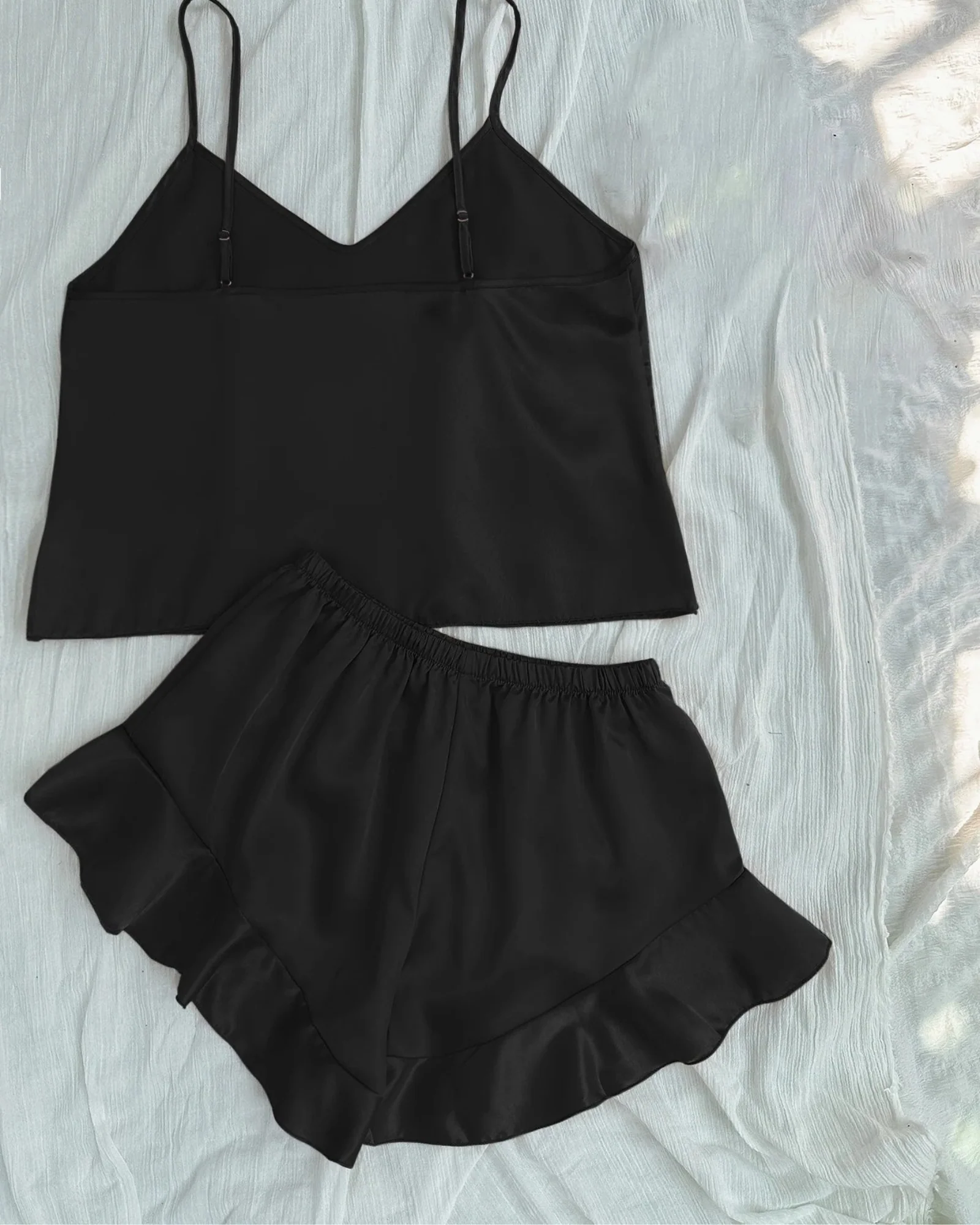 Ce pyjama est le parfait mélange de confort et d’élégance. Fabriqué en tissu soyeux qui enveloppe délicatement le corps, il transforme chaque nuit en une expérience exceptionnelle. Les bretelles réglables permettent d’adapter la partie supérieure à votre silhouette, tandis que les finitions volantées ajoutent légèreté et grâce à l’ensemble. La coupe ajustée met en valeur les formes féminines, vous faisant sentir belle et confiante, même dans le confort de votre maison.
