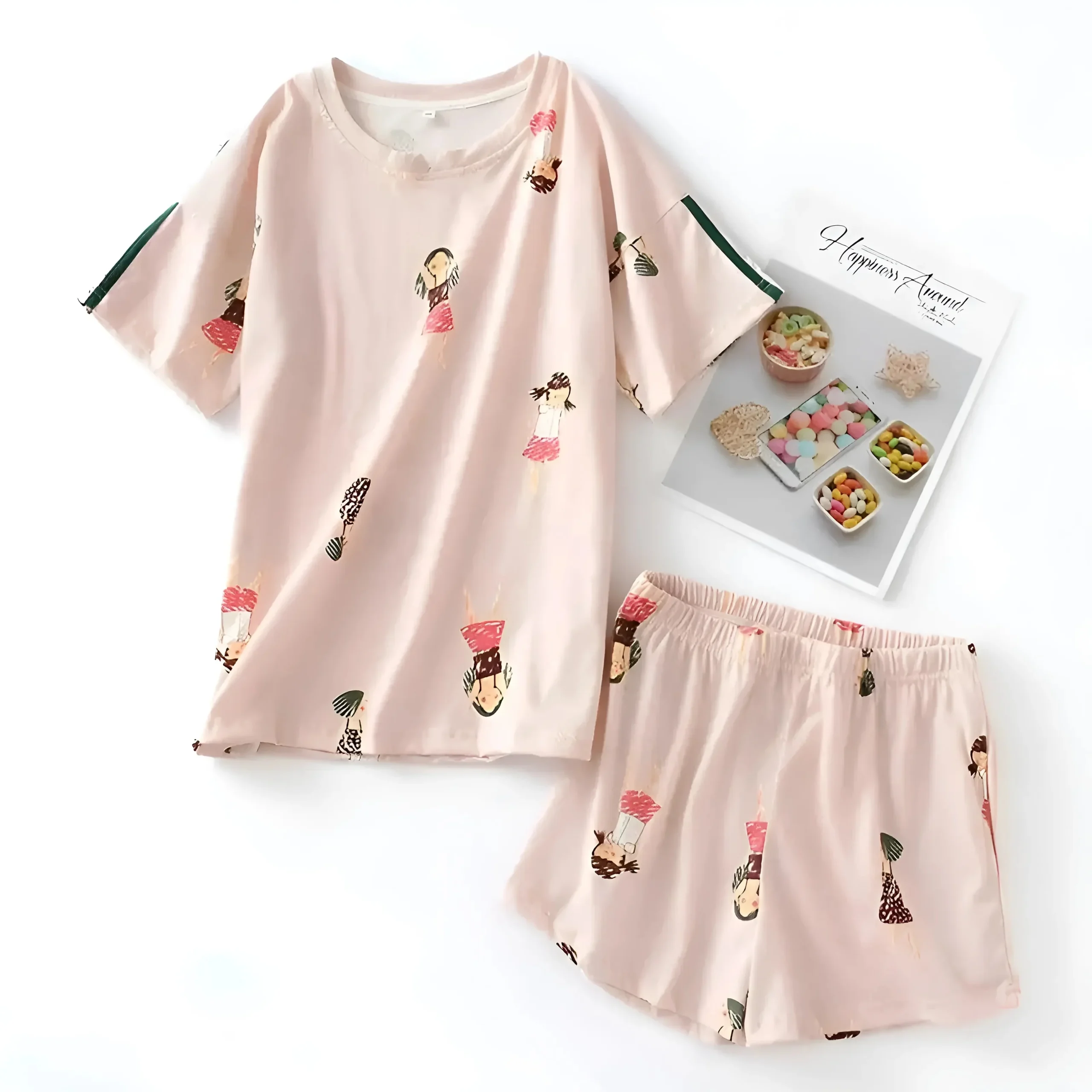 - Deux ensembles de pyjamas avec des shorts et des tops à manches courtes.