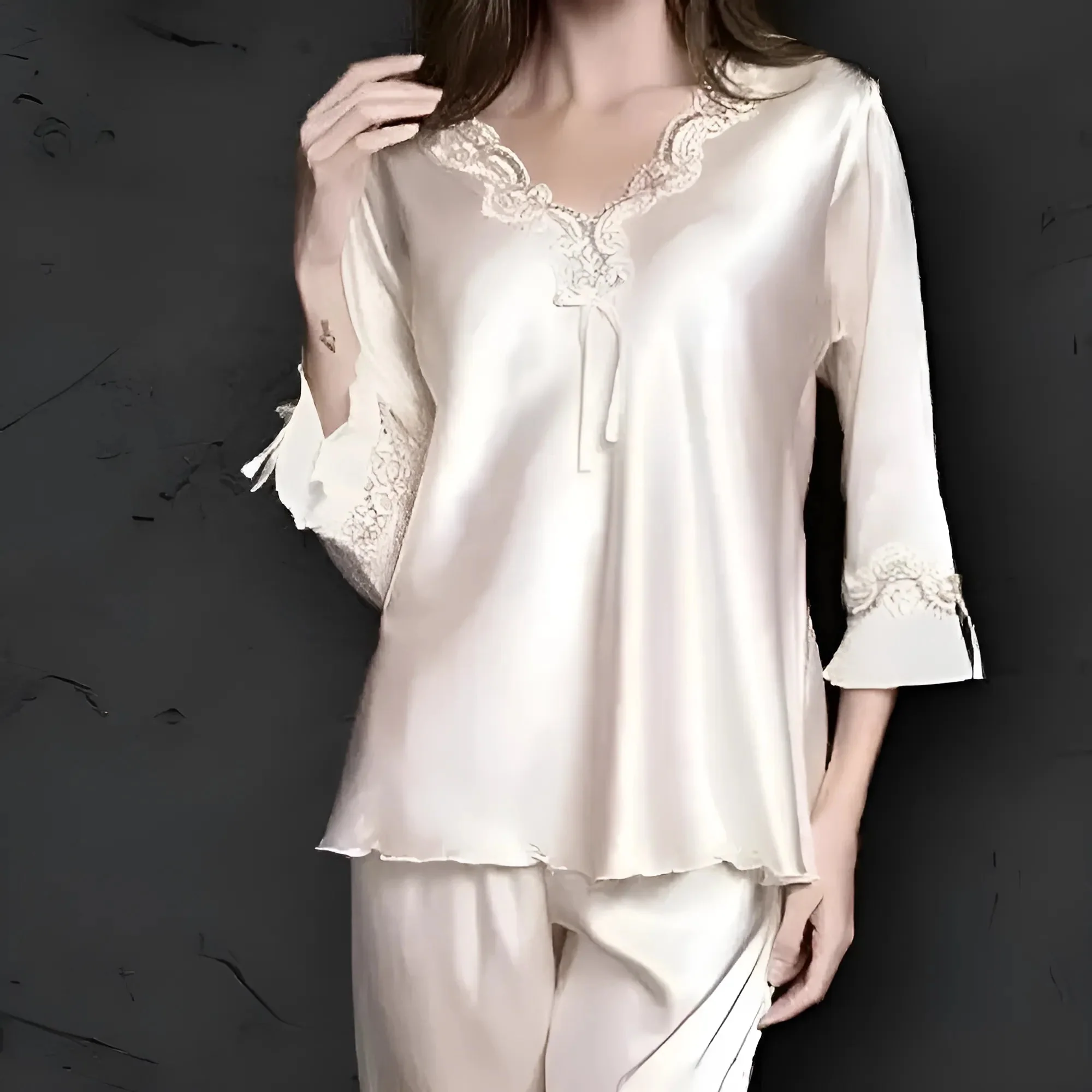Offrez-vous le confort luxueux de notre ensemble de vêtements de détente en satin, avec des détails en dentelle élégants qui vous font sentir belle et confiante. Offrez-vous une soirée cocooning ou une journée stylée—choisissez votre couleur préférée et embrassez votre déesse intérieure aujourd’hui !