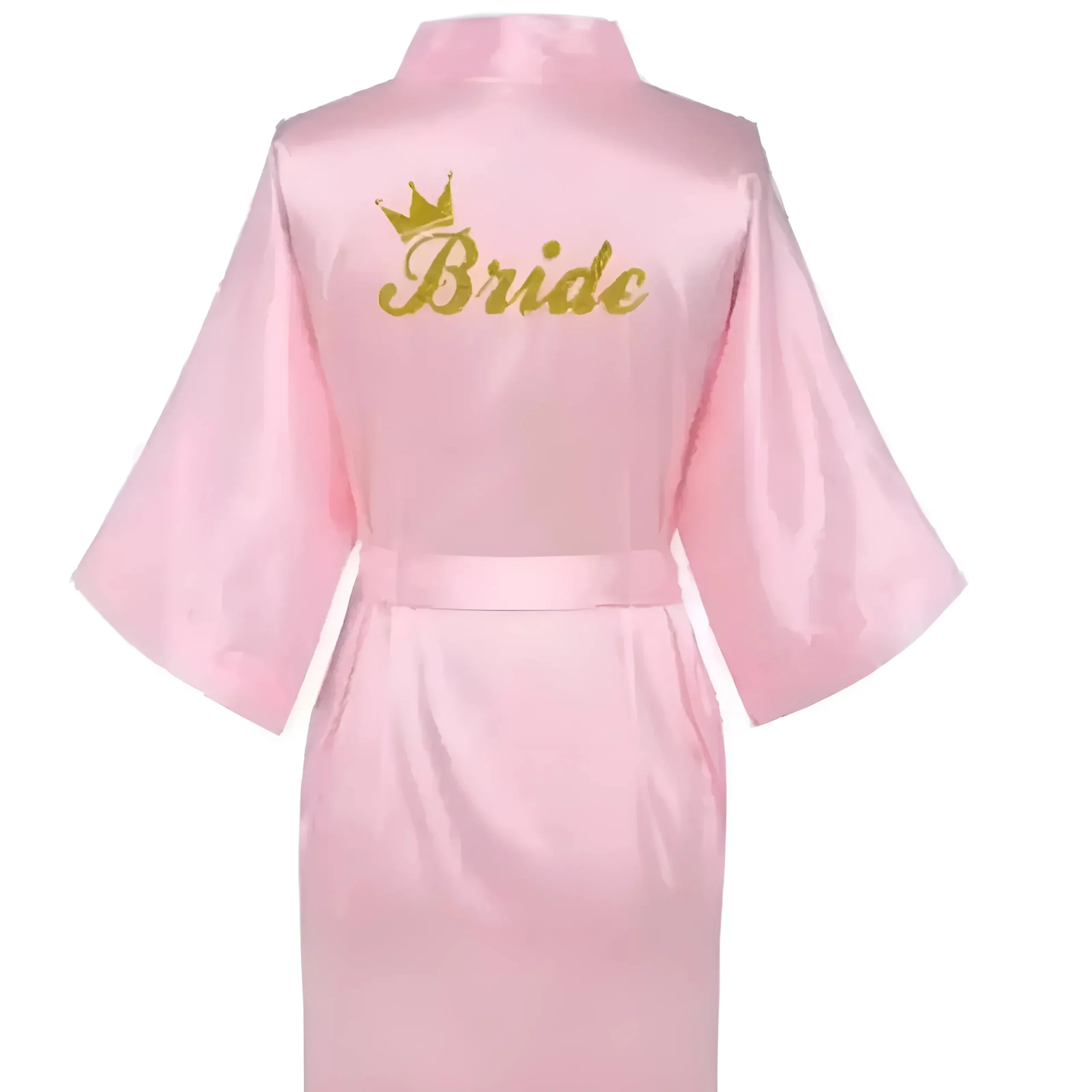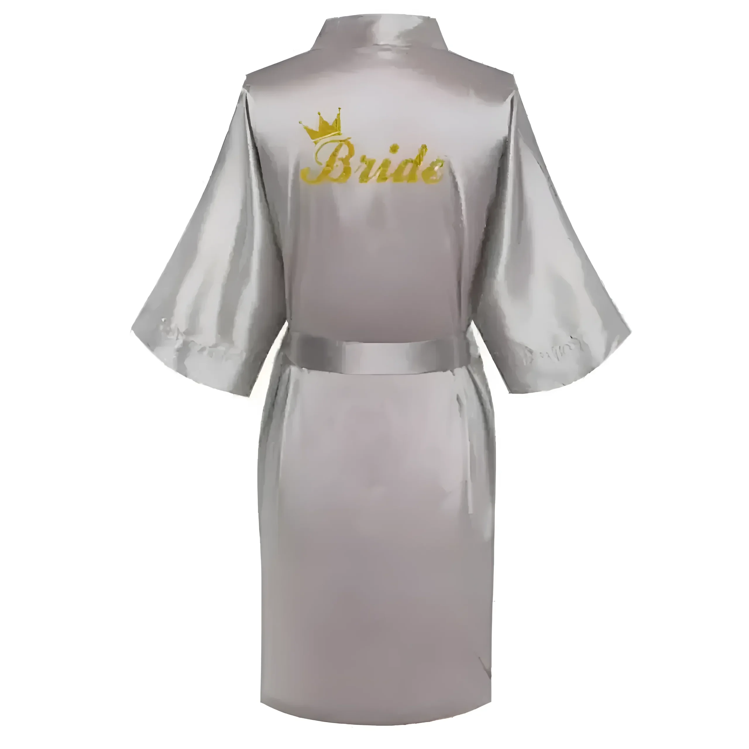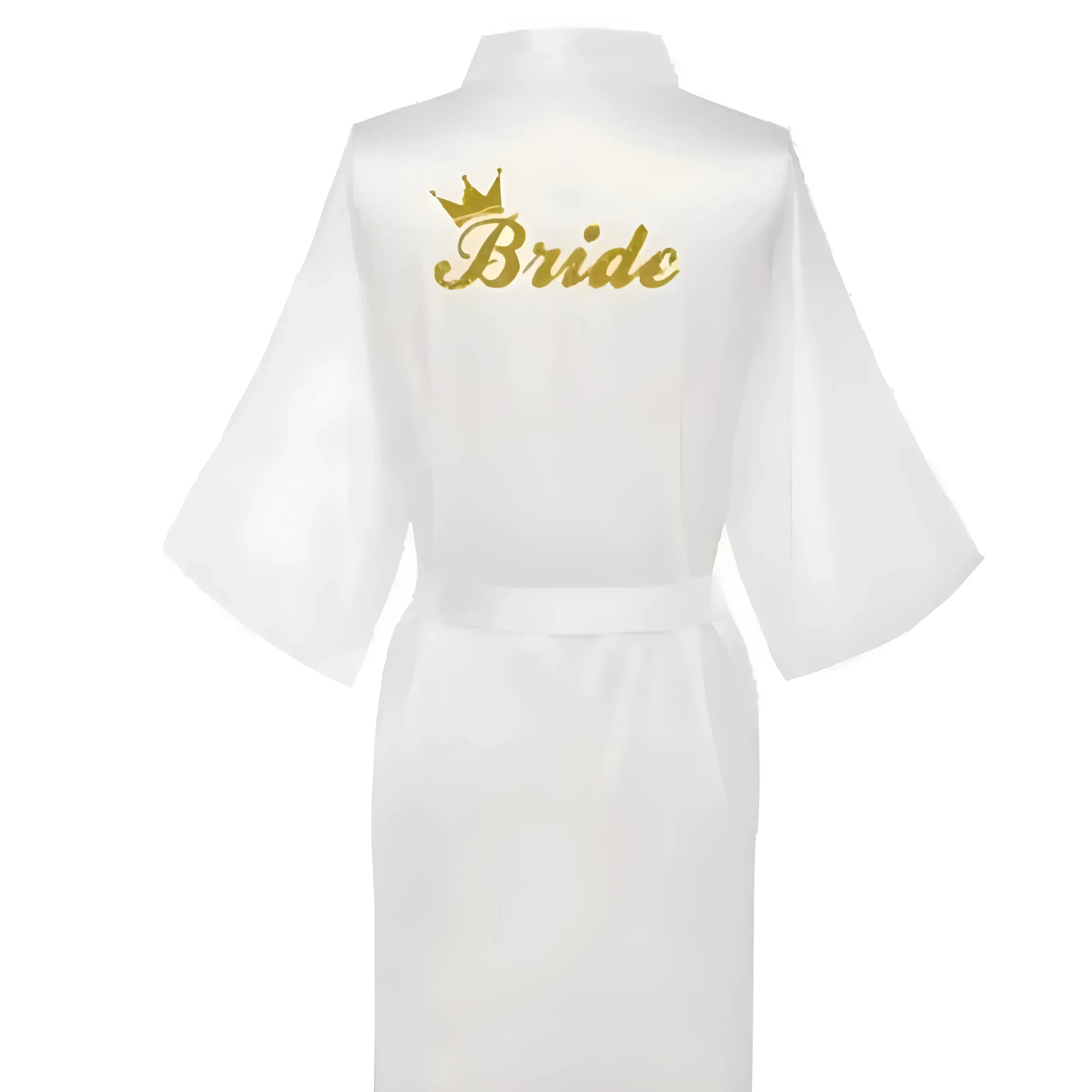 Célébrez votre jour spécial dans notre robe en satin luxueuse, ornée d’un magnifique design « Mariée » en or et de manches élégantes en kimono. Choisissez parmi une belle palette de couleurs pour rendre vos moments de mariée inoubliables—car vous méritez de briller !