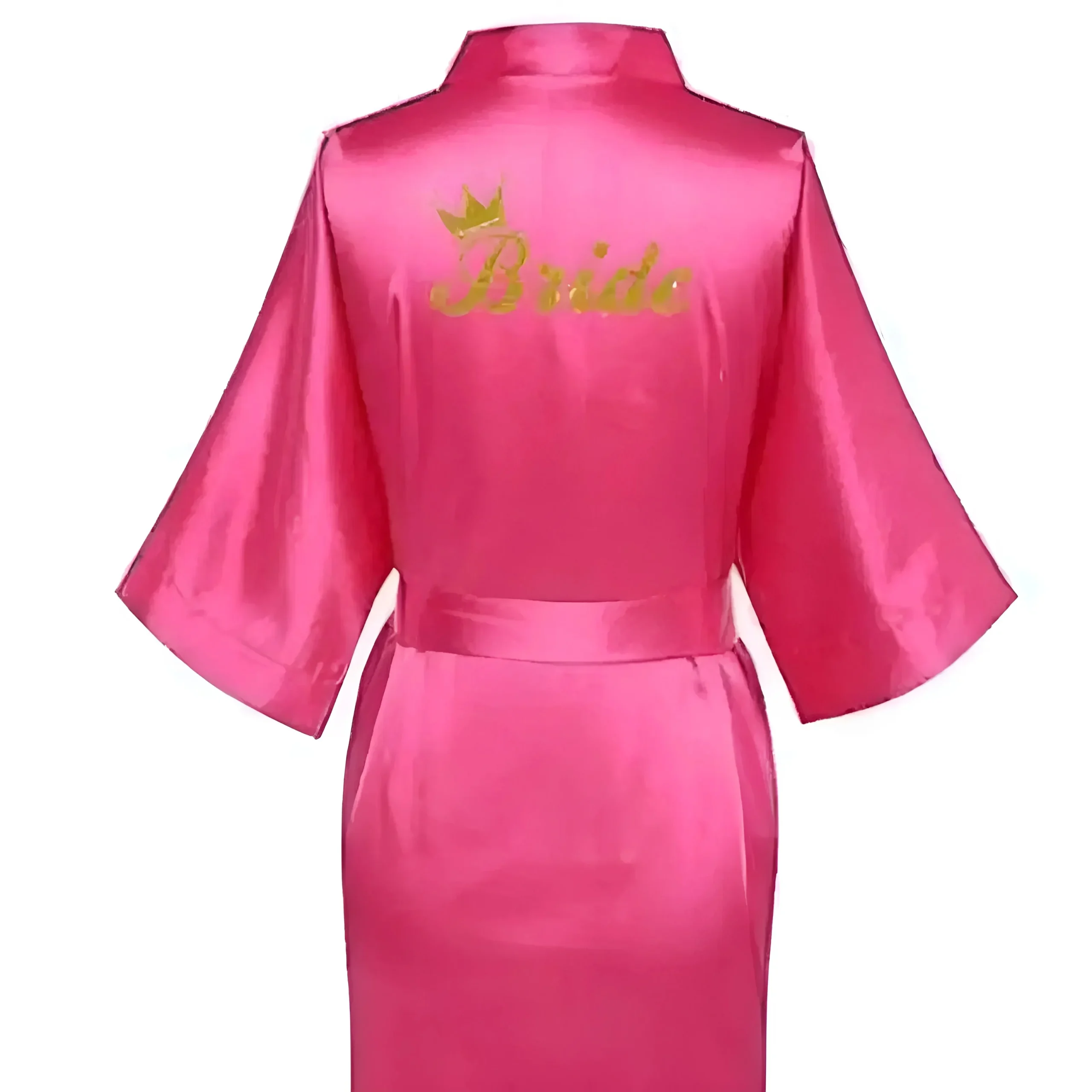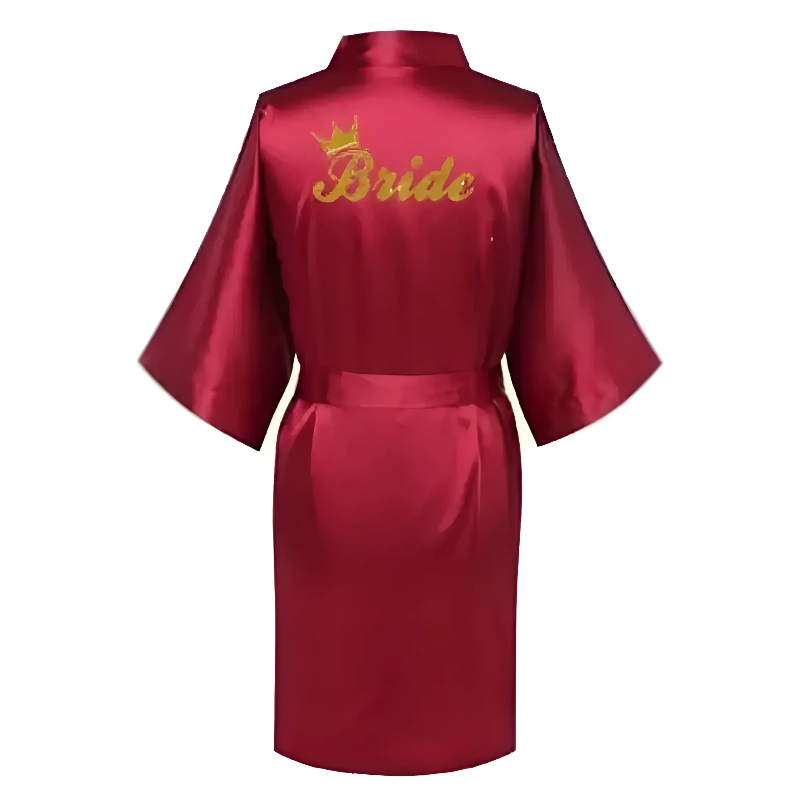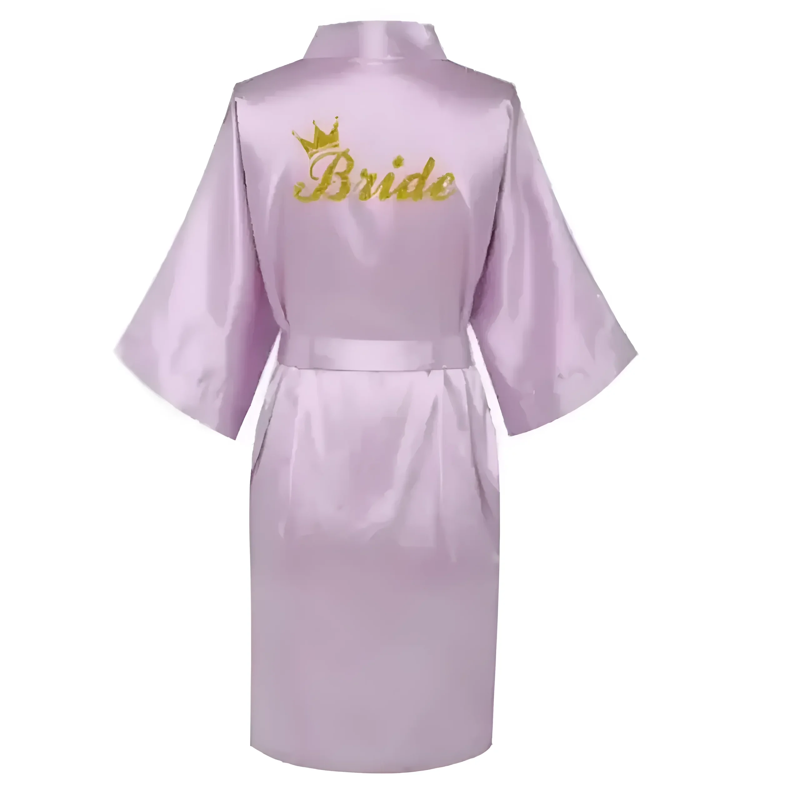 Célébrez votre jour spécial dans notre robe en satin luxueuse, ornée d’un magnifique design « Mariée » en or et de manches élégantes en kimono. Choisissez parmi une belle palette de couleurs pour rendre vos moments de mariée inoubliables—car vous méritez de briller !