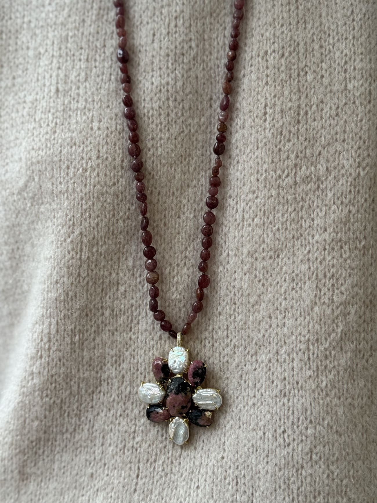 SAUTOIR PIERRE NATURELLE – FLEUR – RUBIS