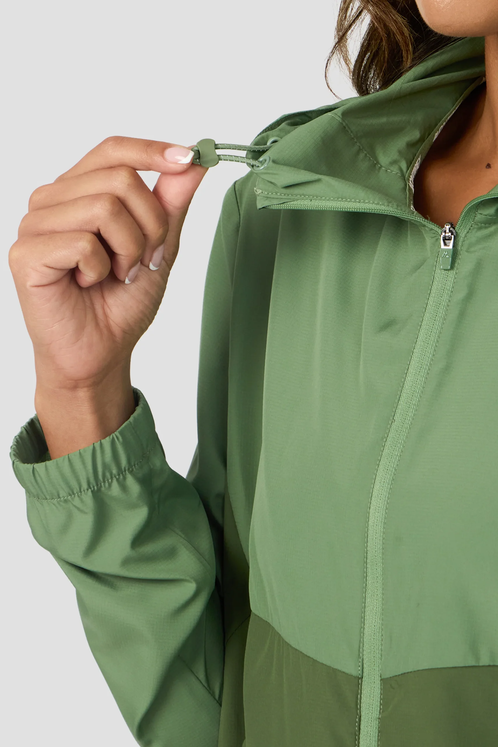 Engineered for performance, this lightweight windbreaker features adjustable bungees at the hood, reflective branding for visibility, elasticated cuffs and hem, and secure zip pockets for essentials.