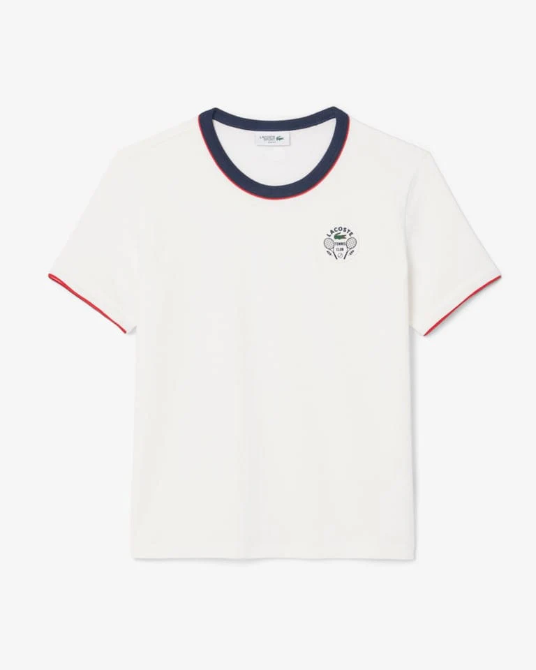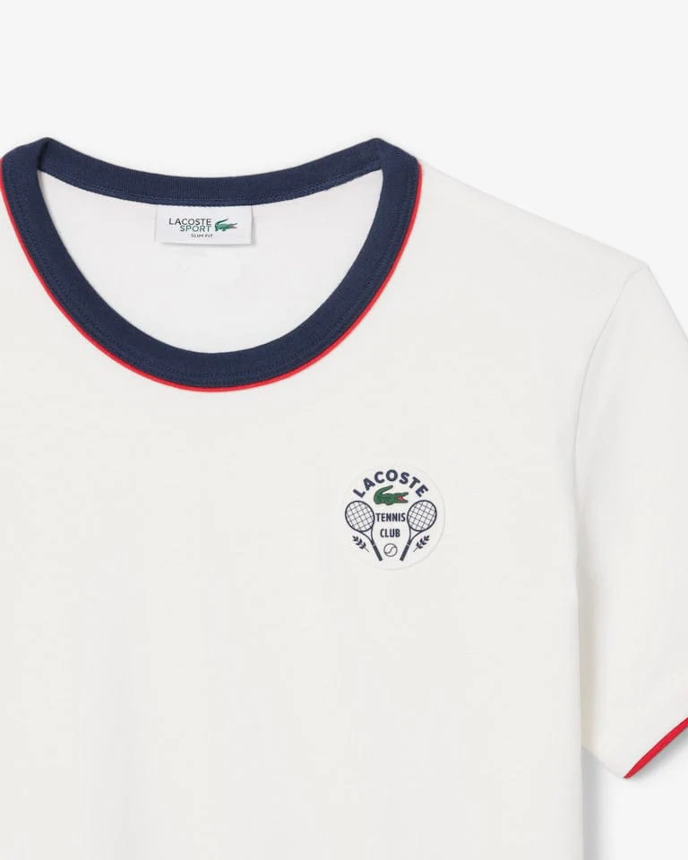 Le t-shirt Lacoste Héritage Ultra Dry Badge associe l’élégance vintage à une technologie moderne pour performer avec style sur le court comme en dehors.