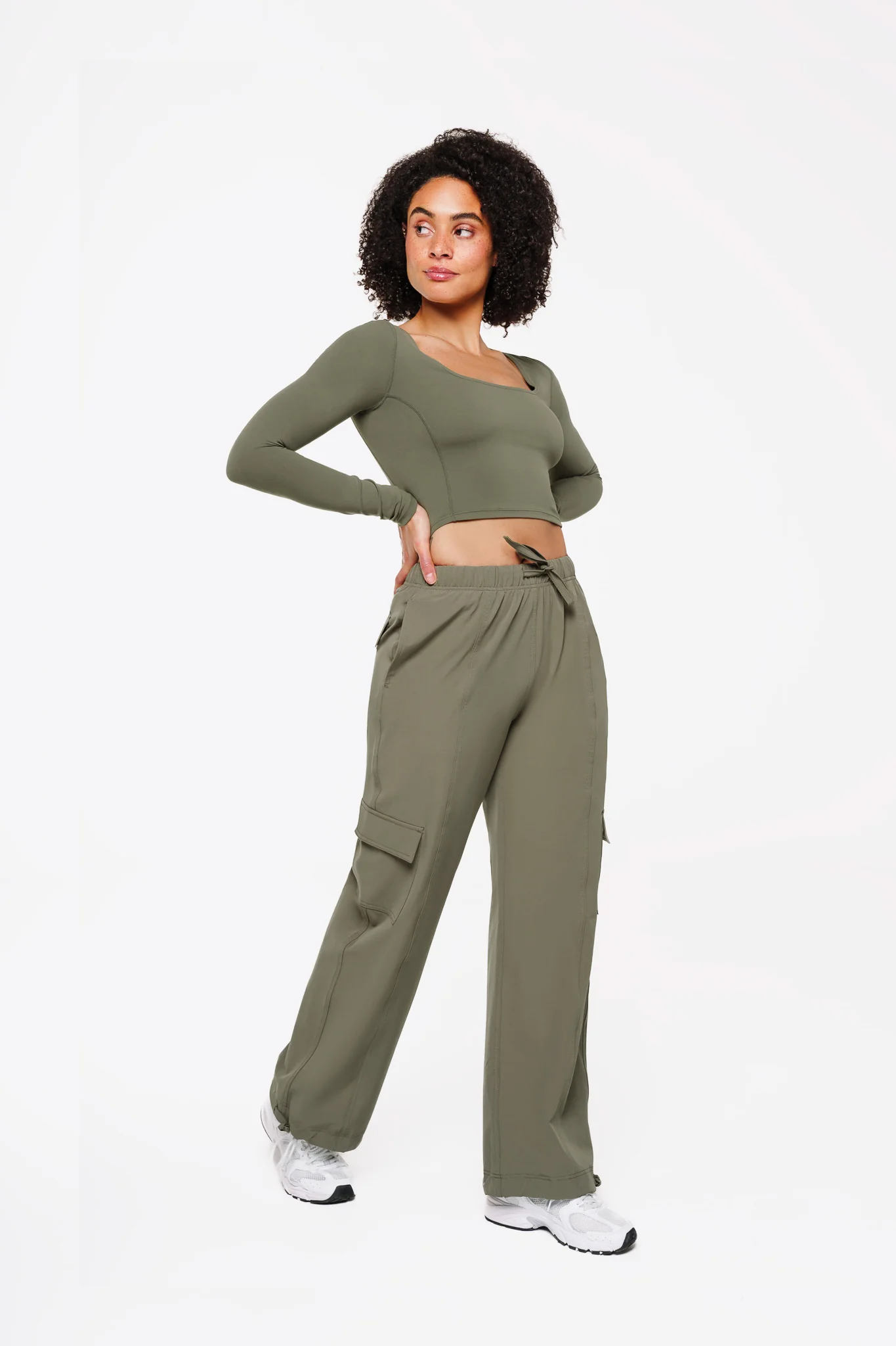 Le conseil de la team : Le TOP SQUARE CROP MANCHES LONGUES SOFTLUXE peut être assorti en total look avec le PANTALON CARGO et le COUPE VENT ZIP TECH LIGHT TECH.