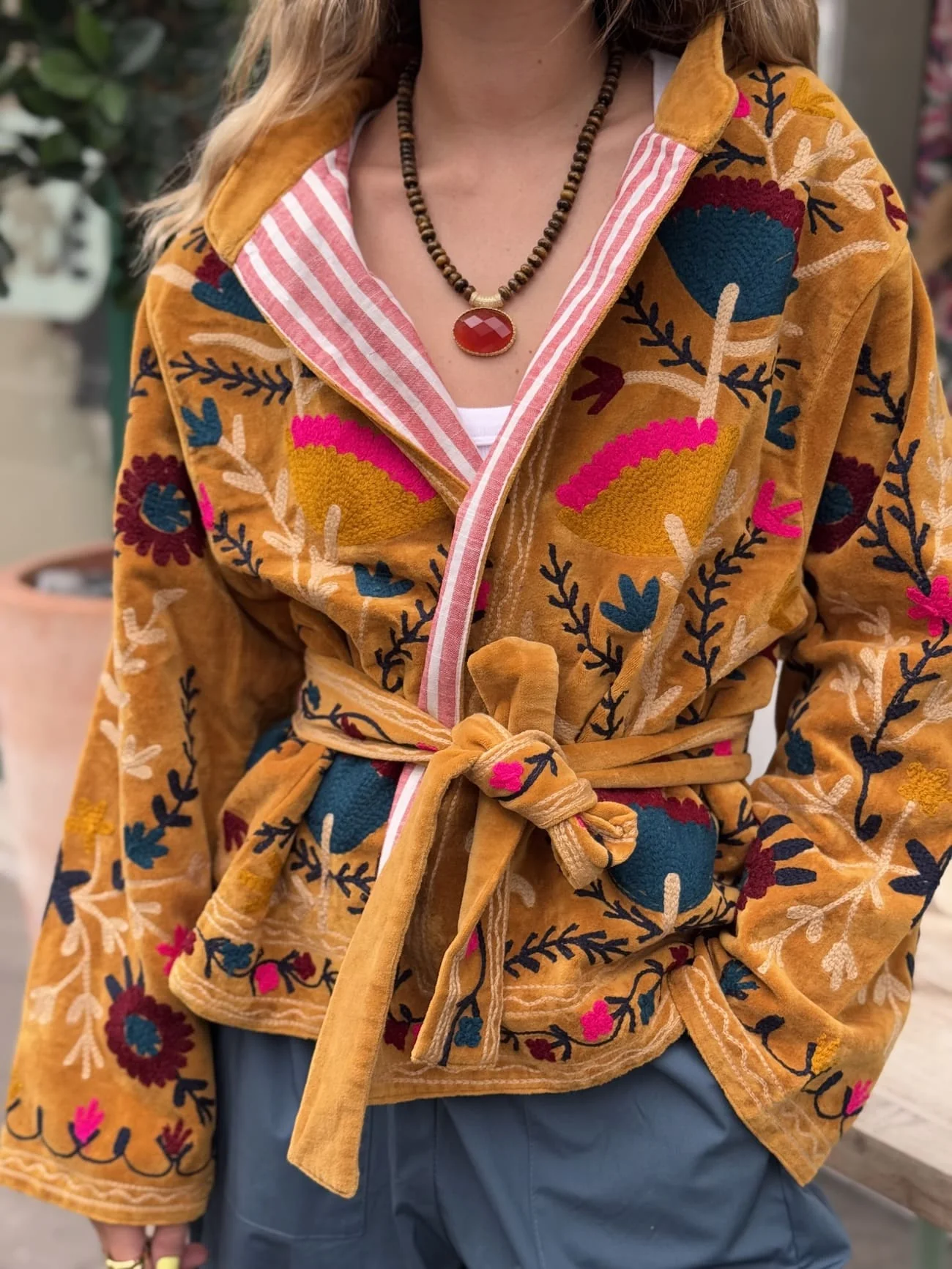 VESTE VELOURS JAUNE BRODEE